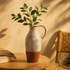 •This farmhouse vase for home decor is meticulously molded from stoneware and glazed with a smooth coating to form its unique shape with an attached handle