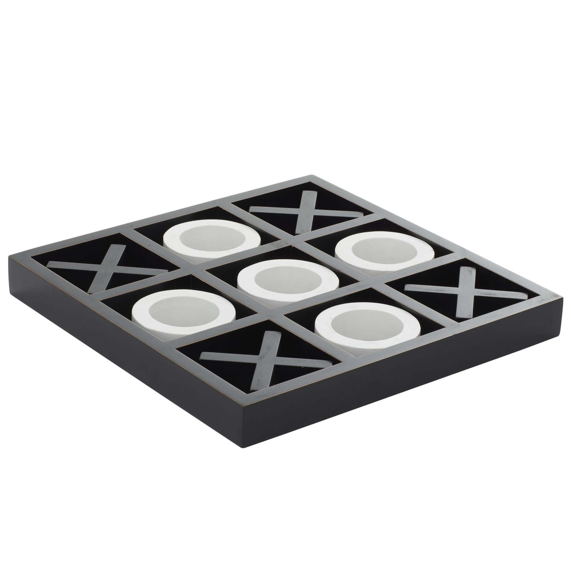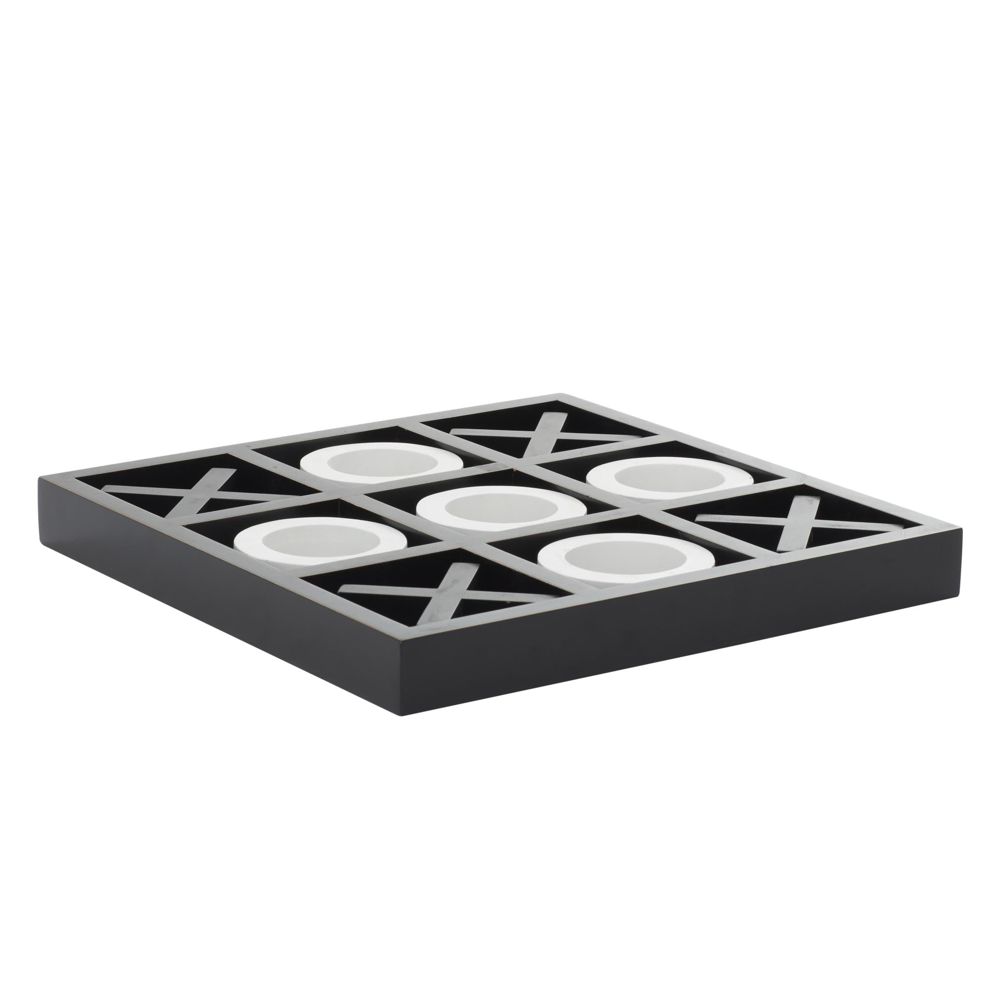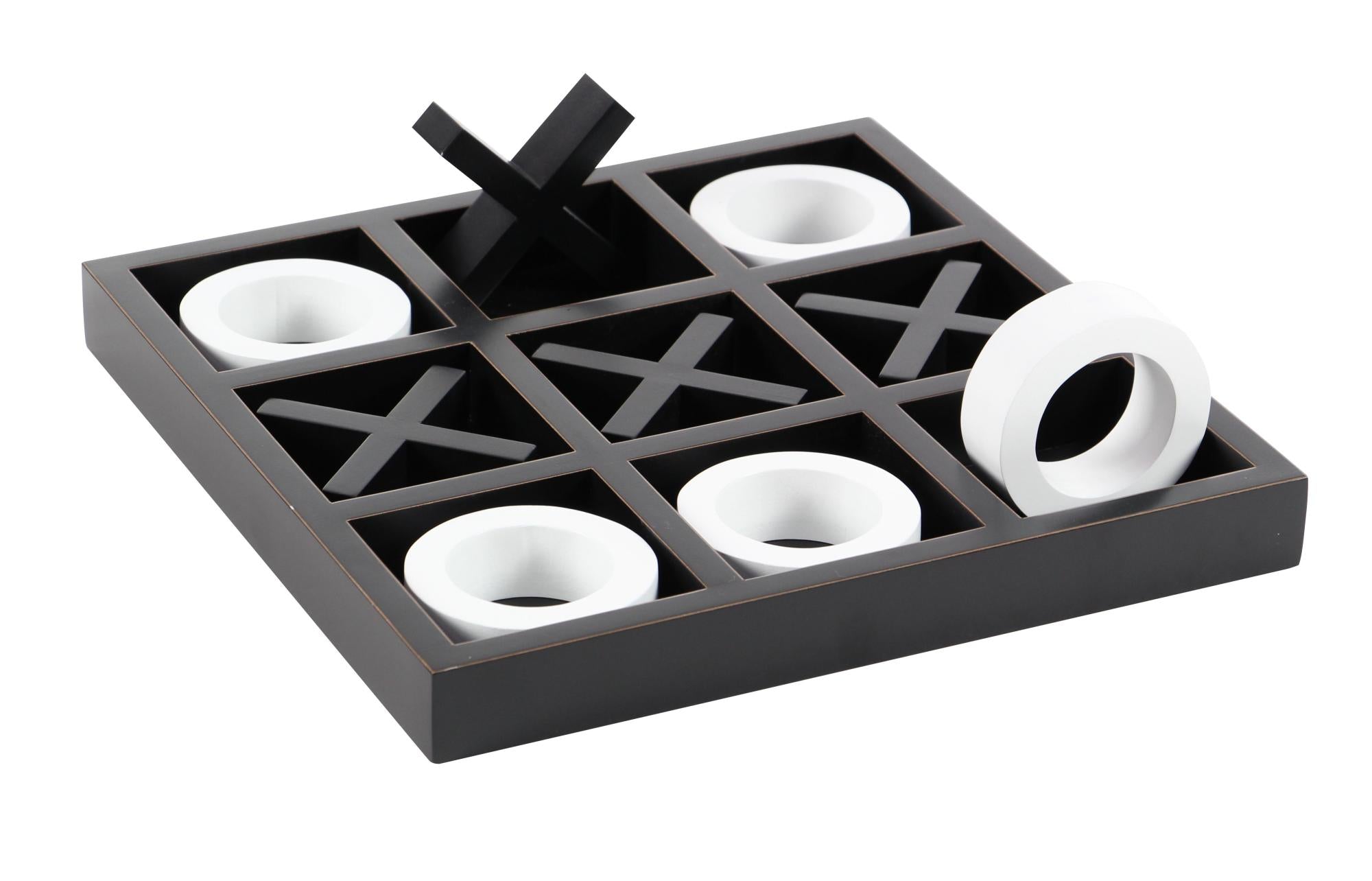 Showoff your competitive side and keep your guest entertain with this game set. A sleek and sophisticated display with a playful touch. Perfect for your living room, home office, or guest room, the tic tac toe decorative board game serves as both a striking decoration and an engaging pastime. Designed with felt or rubber stoppers at the base that prevent scratching furniture and table tops, as well as sliding around. This item ships in 1 carton. Mdf game set makes a great gift for any occasion. Suitable for indoor use only. This item ships fully assembled in one piece. Made in India. This is a single decorative board game. Traditional style.