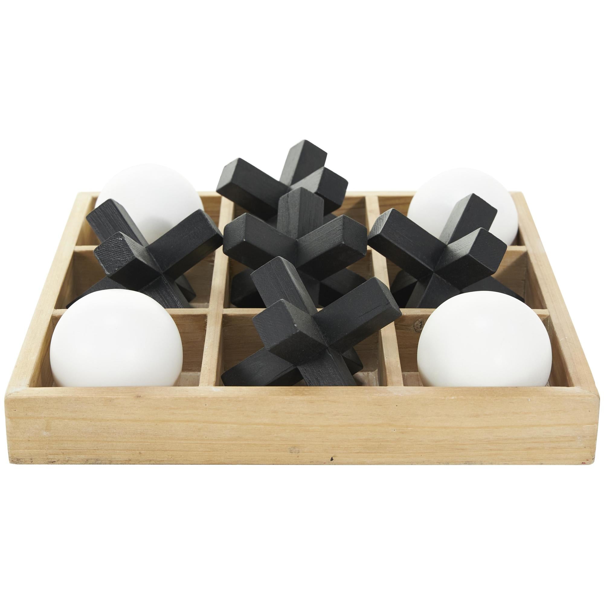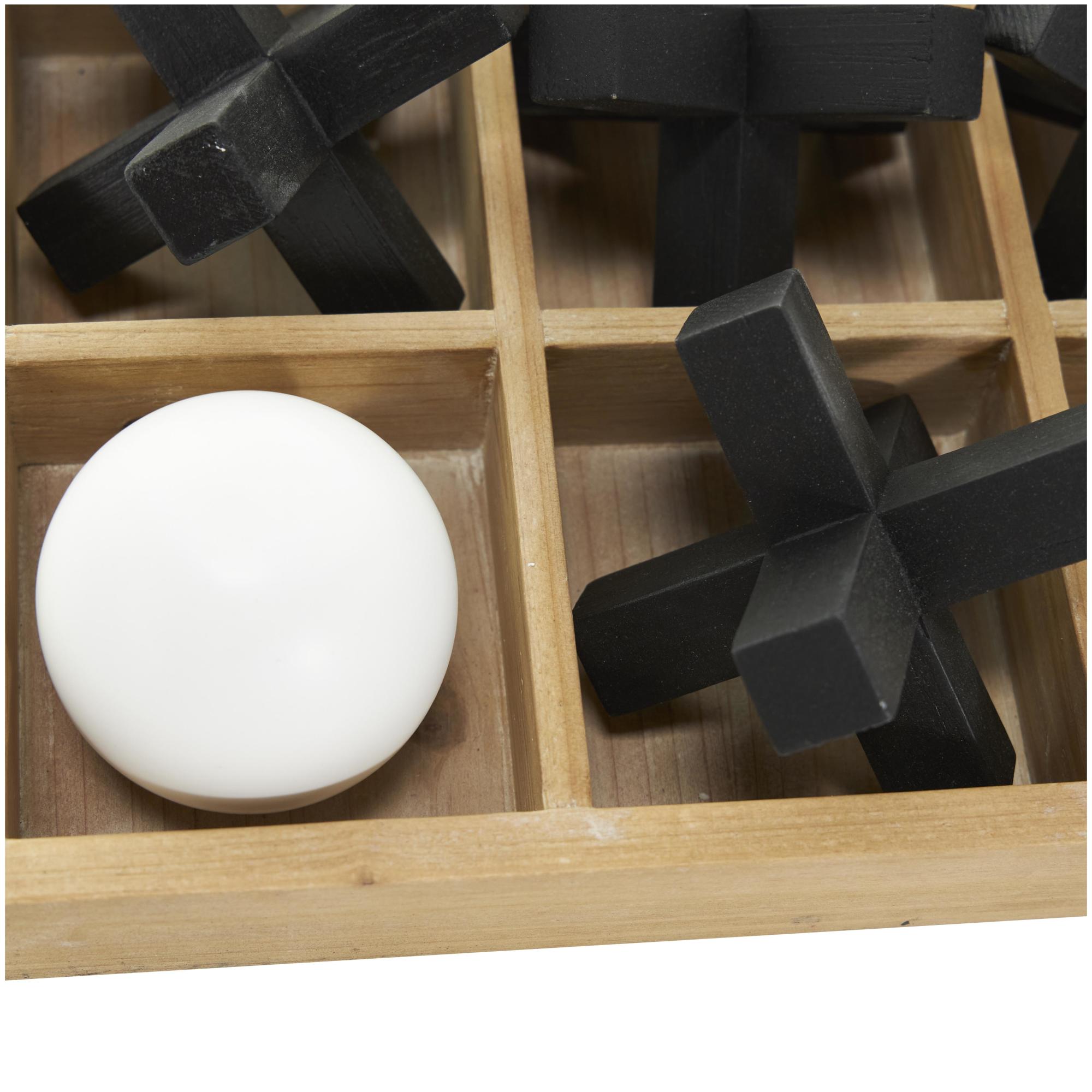 Tic Tac Toe Brown Wood Dimensional Home Decor Game Set with 3D Black and White Game Pieces