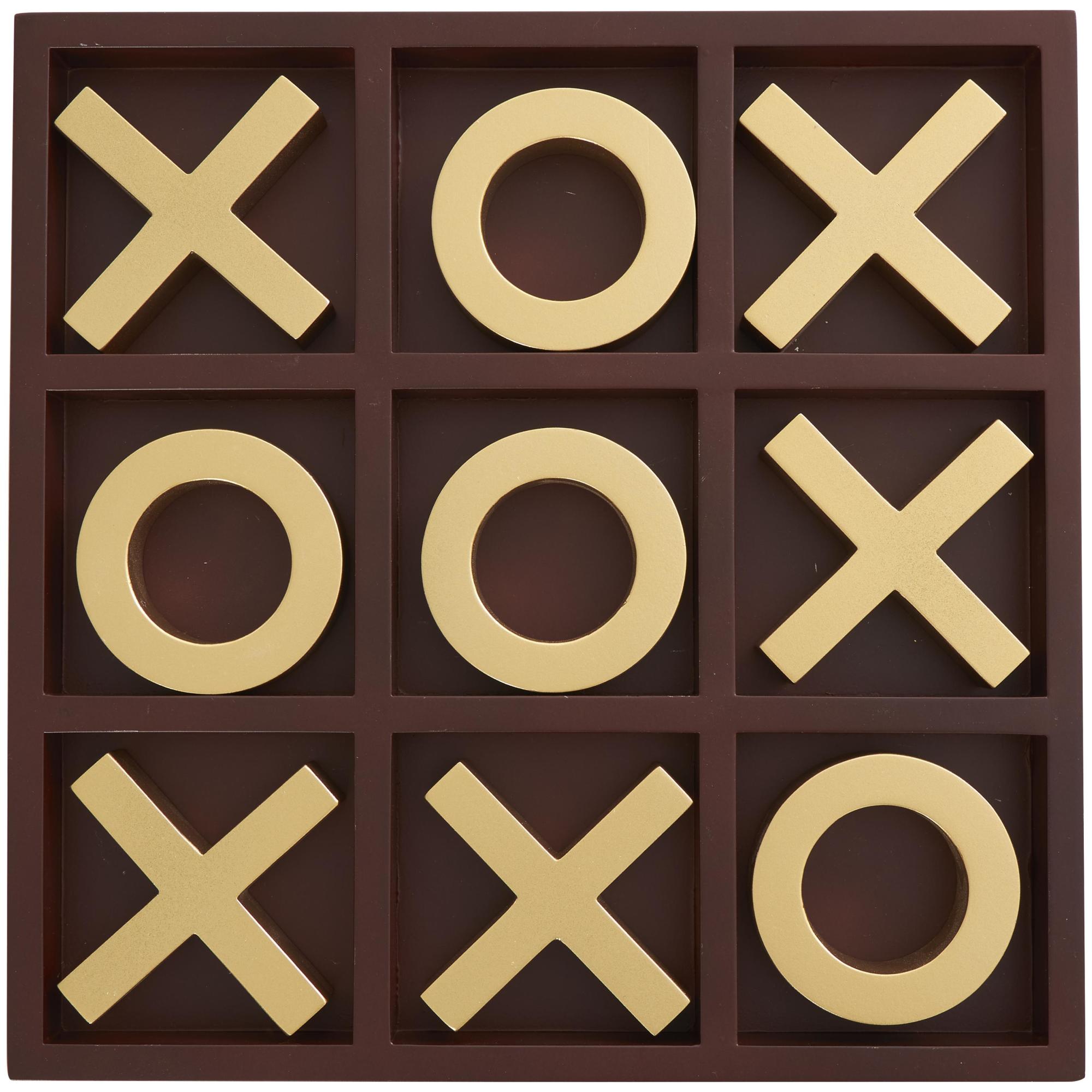 Tic Tac Toe Brown Wooden Home Decor Game Set with Gold X and O Pieces