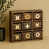 Tic Tac Toe Dark Brown Mango Wood Home Decor Game Set with Gold Inlay