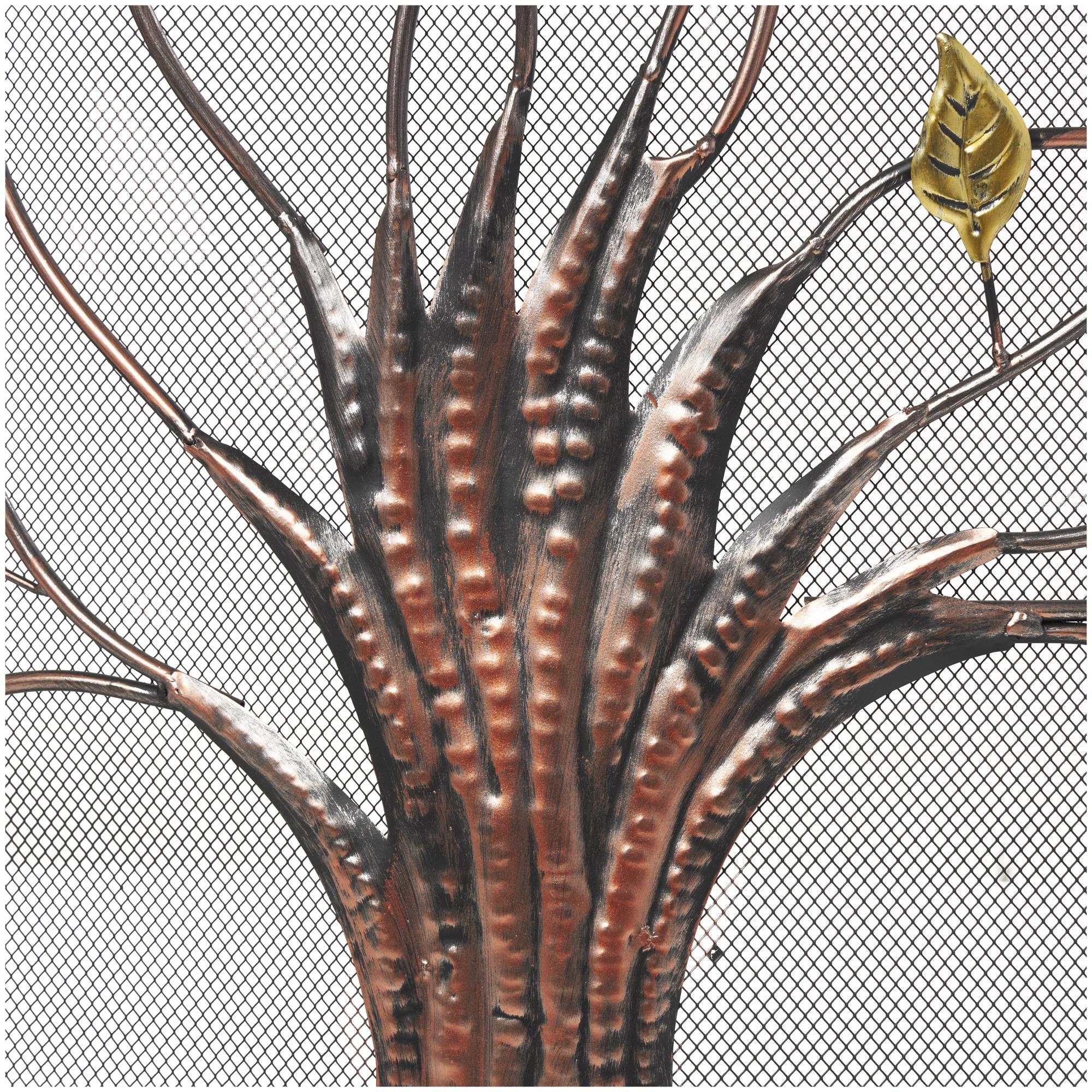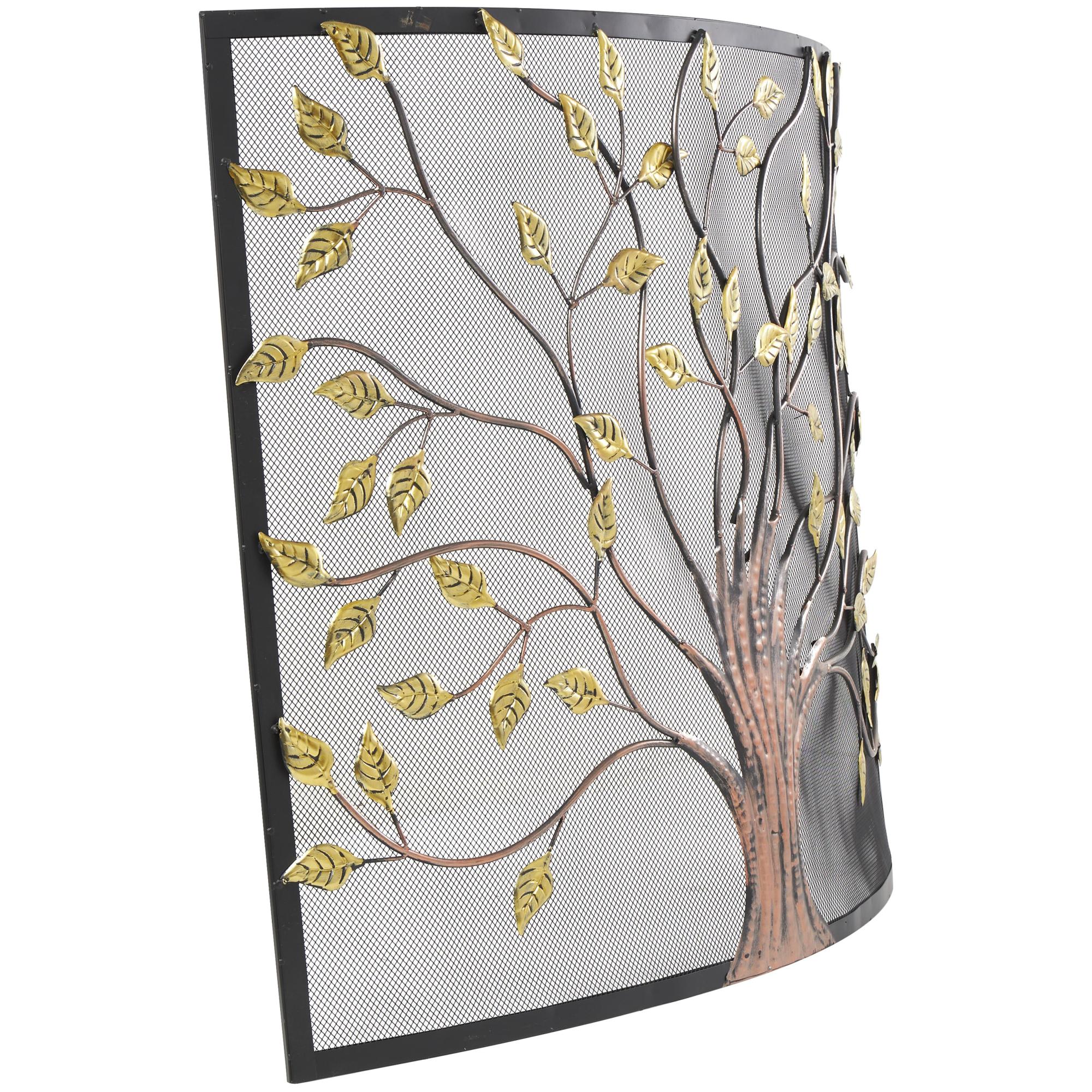 Keep those straw ambers at bay with this fire place screen. Adding style even when the fire isn't lit, this fireplace screen adds style as well as function. Position the tree fire spark guard near a mantel or under wall shelves to enhance your home's artistic display. This item ships in 1 carton. Please note that this item is for decorative use only. Features a detailed tree of life design at the front. This fireplace screen features paint that can resist heat up to 600 degrees.. Suitable for indoor use only. This item ships fully assembled in one piece. Item features a single panel screen. This is a single fire spark guard. Farmhouse style.
