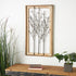 •This contemporary room wall decor is meticulously crafted with a mitered wooden frame housing welded iron rods that form vertically oriented tree branches