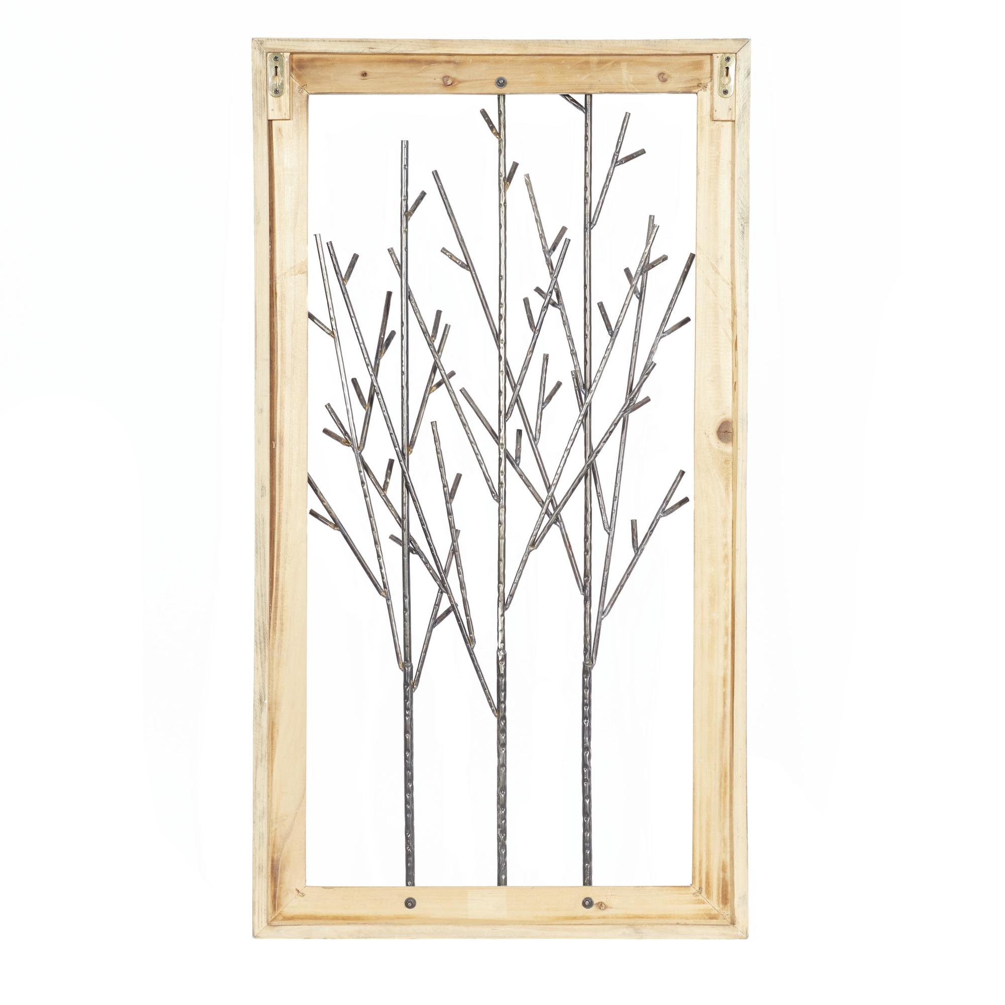 •Iron wall decor features metal tree branches as its main attraction, set within an open-frame design for added visual interest