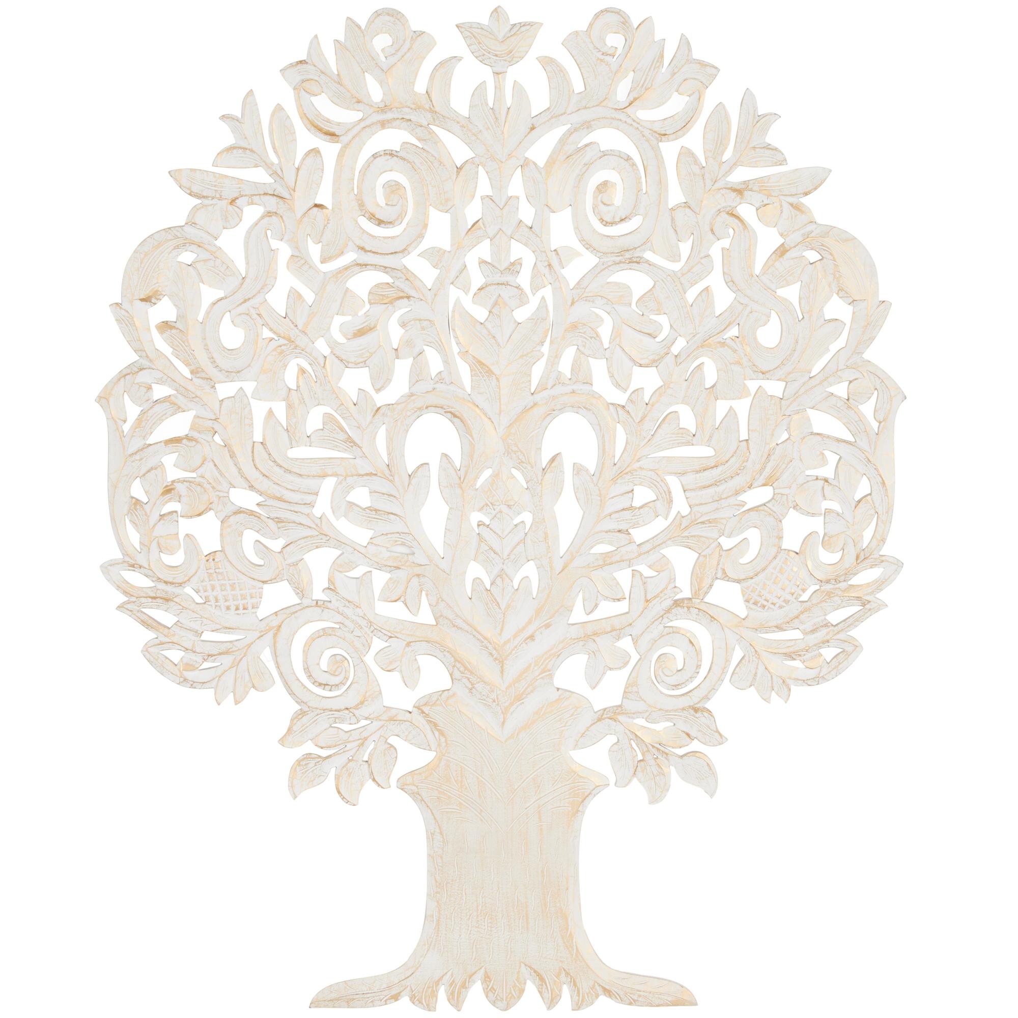 Tree Gold Wooden Handmade Carved Home Wall Decor with Scroll Details
