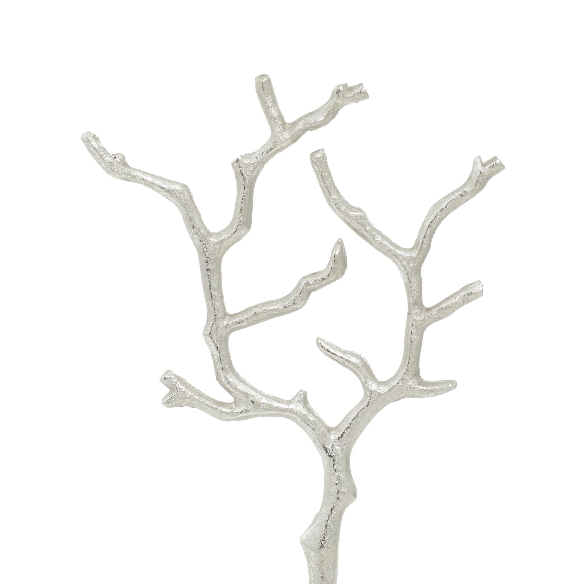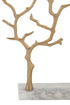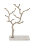 •Textural, metallic finish throughout leafless tree sculpture with various-sized branches to display jewelry; flat and marble base to hold rings