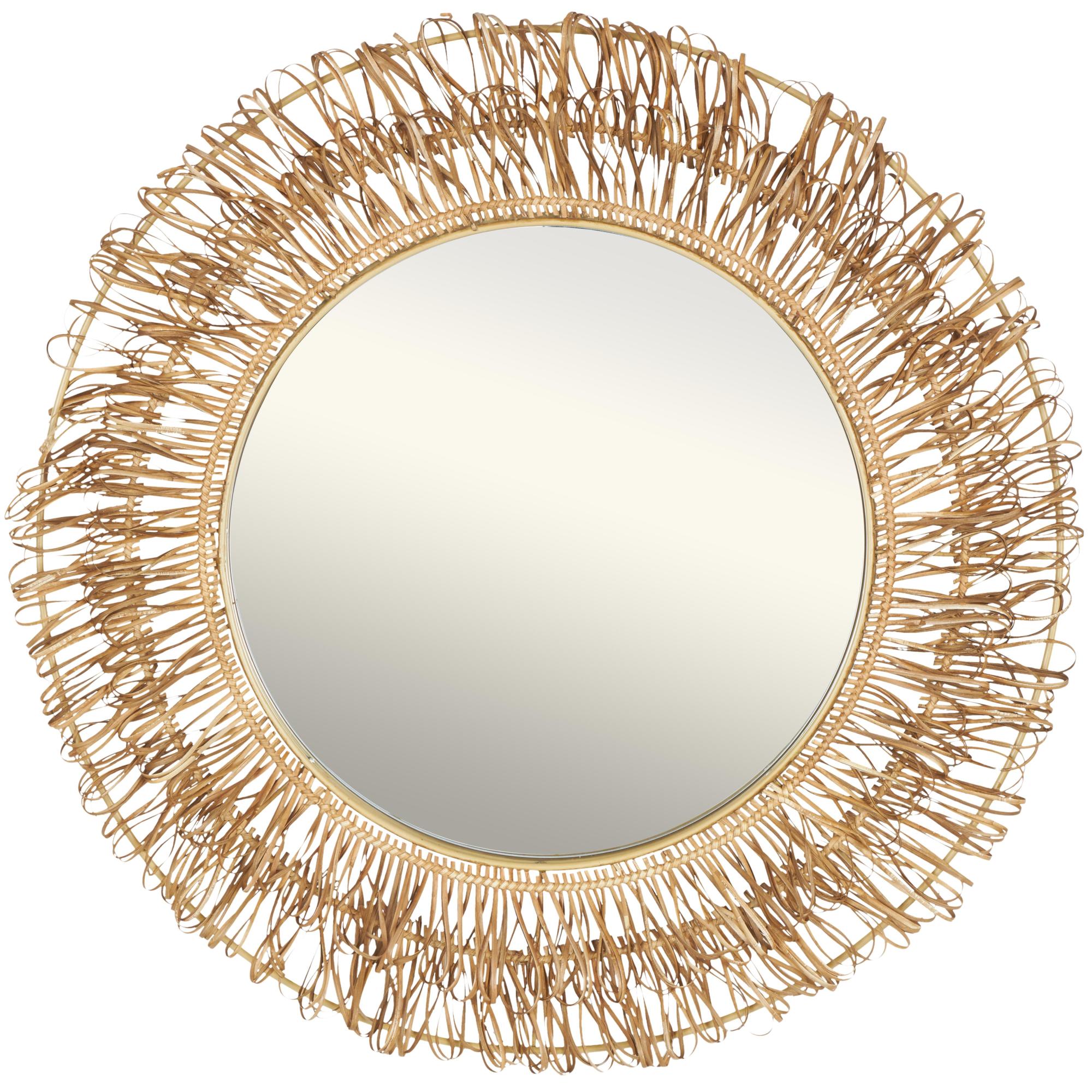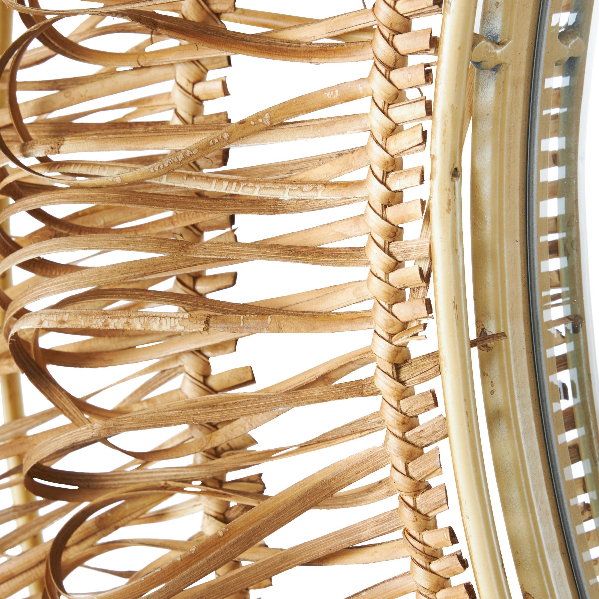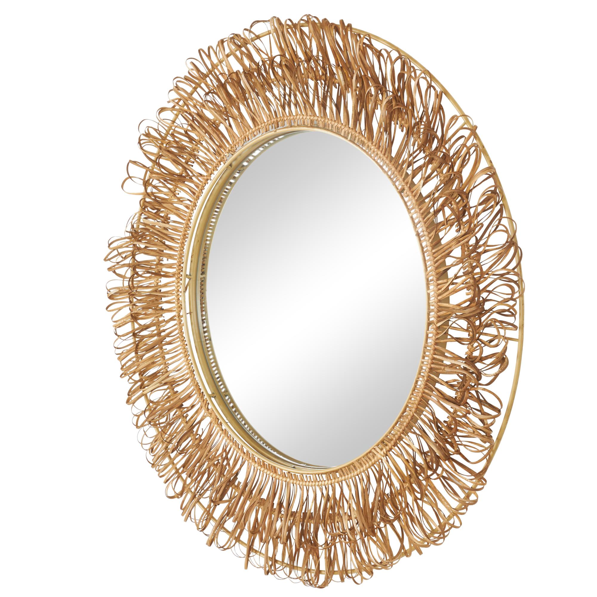 •The unique feature of this rattan wall mirror is its looped design, which creates an eye-catching pattern around the circumference