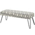 •Textured multi-colored entry bench forms a rectangular structure with diamond patterns, and four slender hairpin metal legs