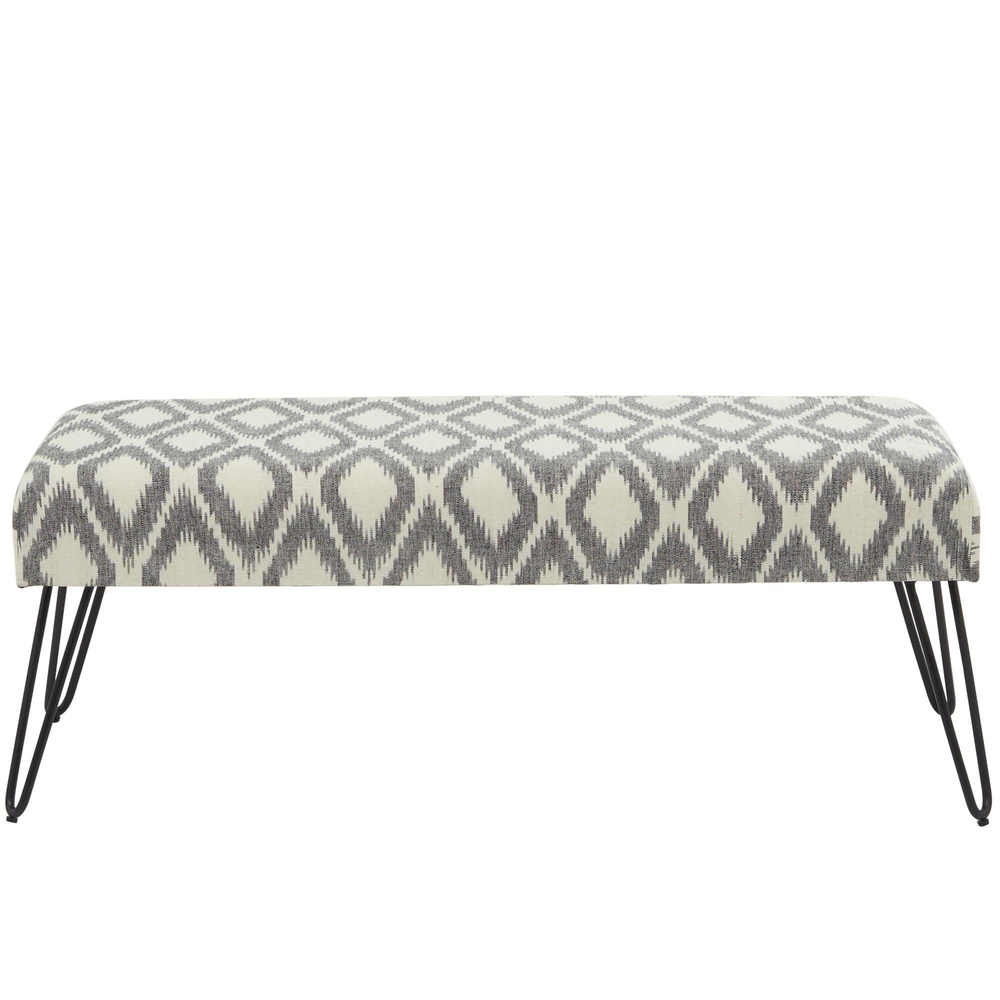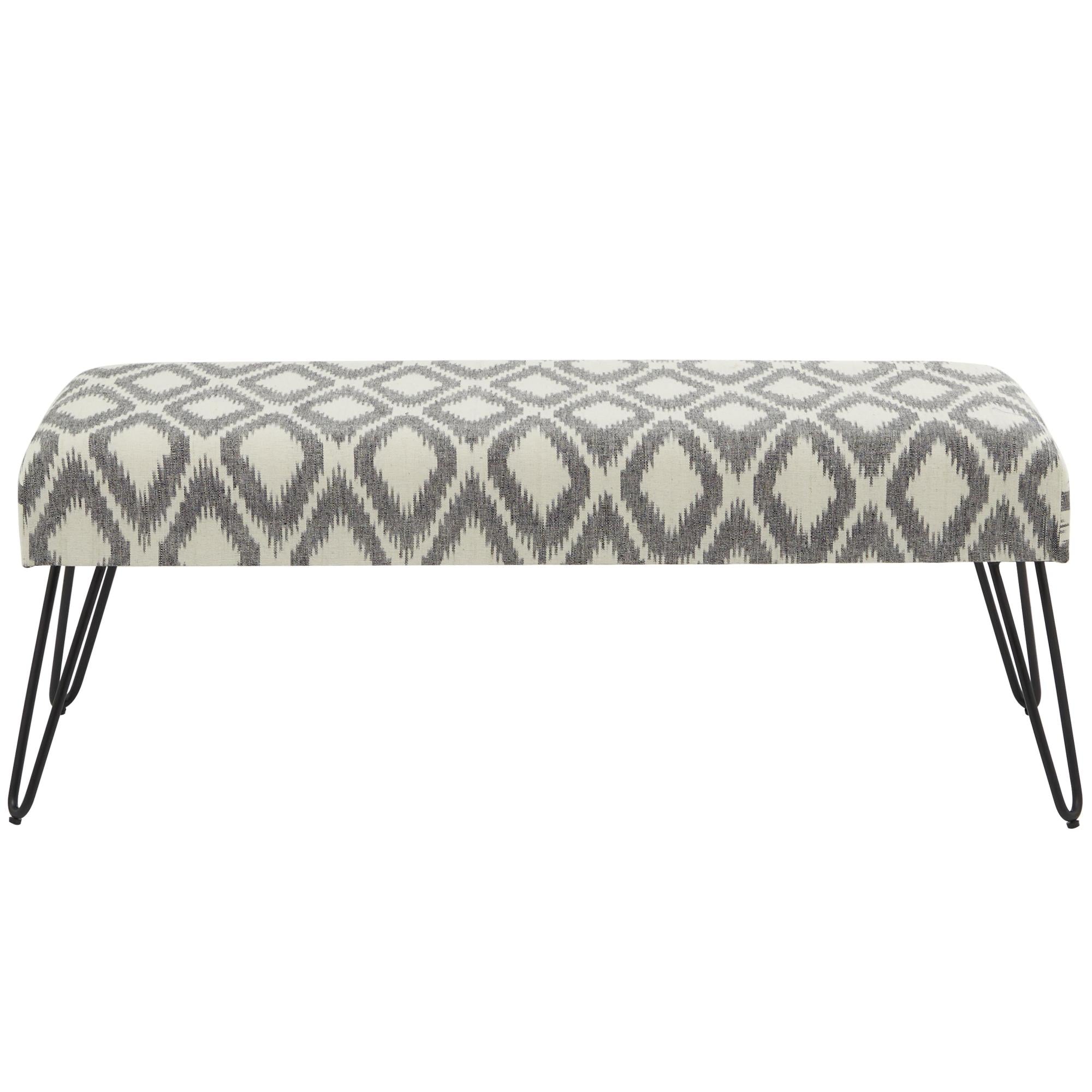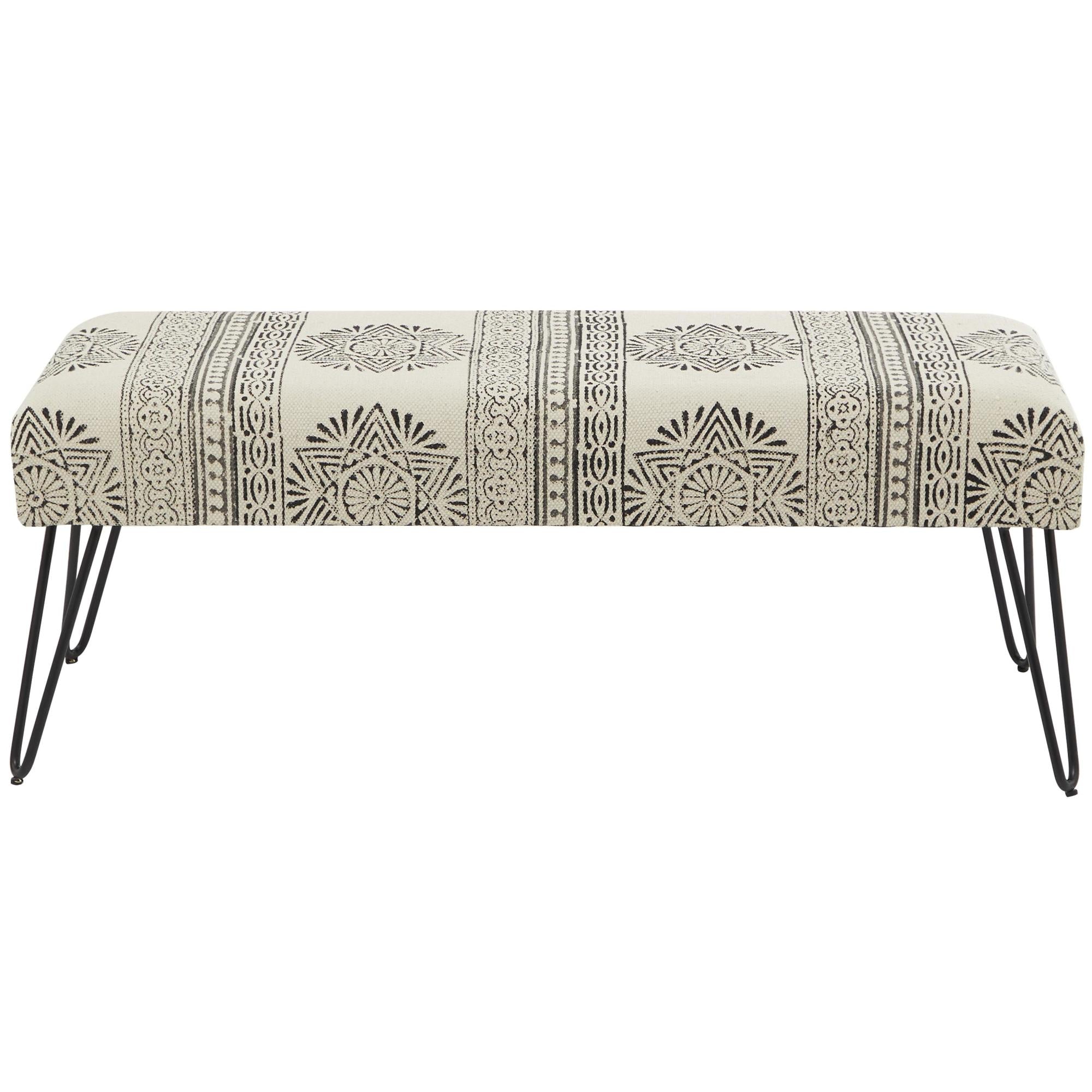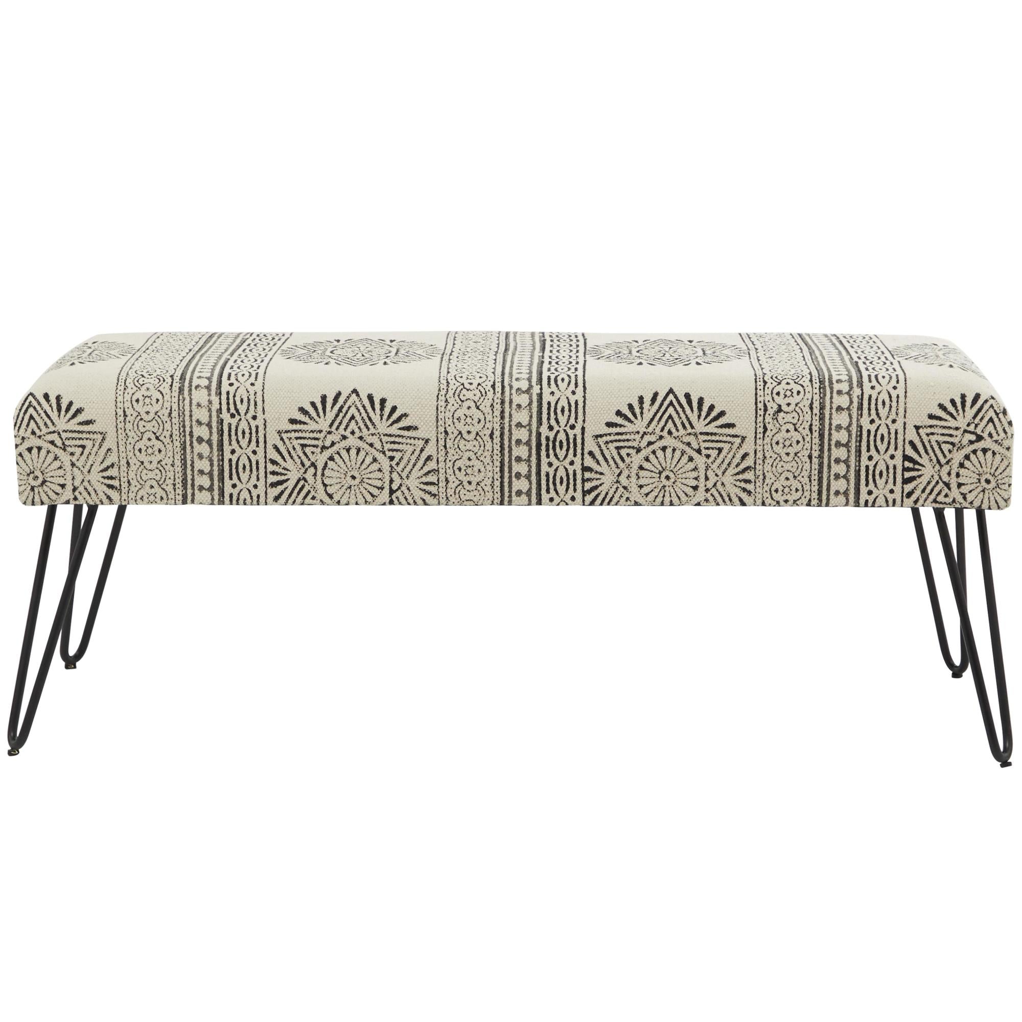 Tribal Cotton Fabric Home Bench with Metal Hairpin Legs