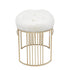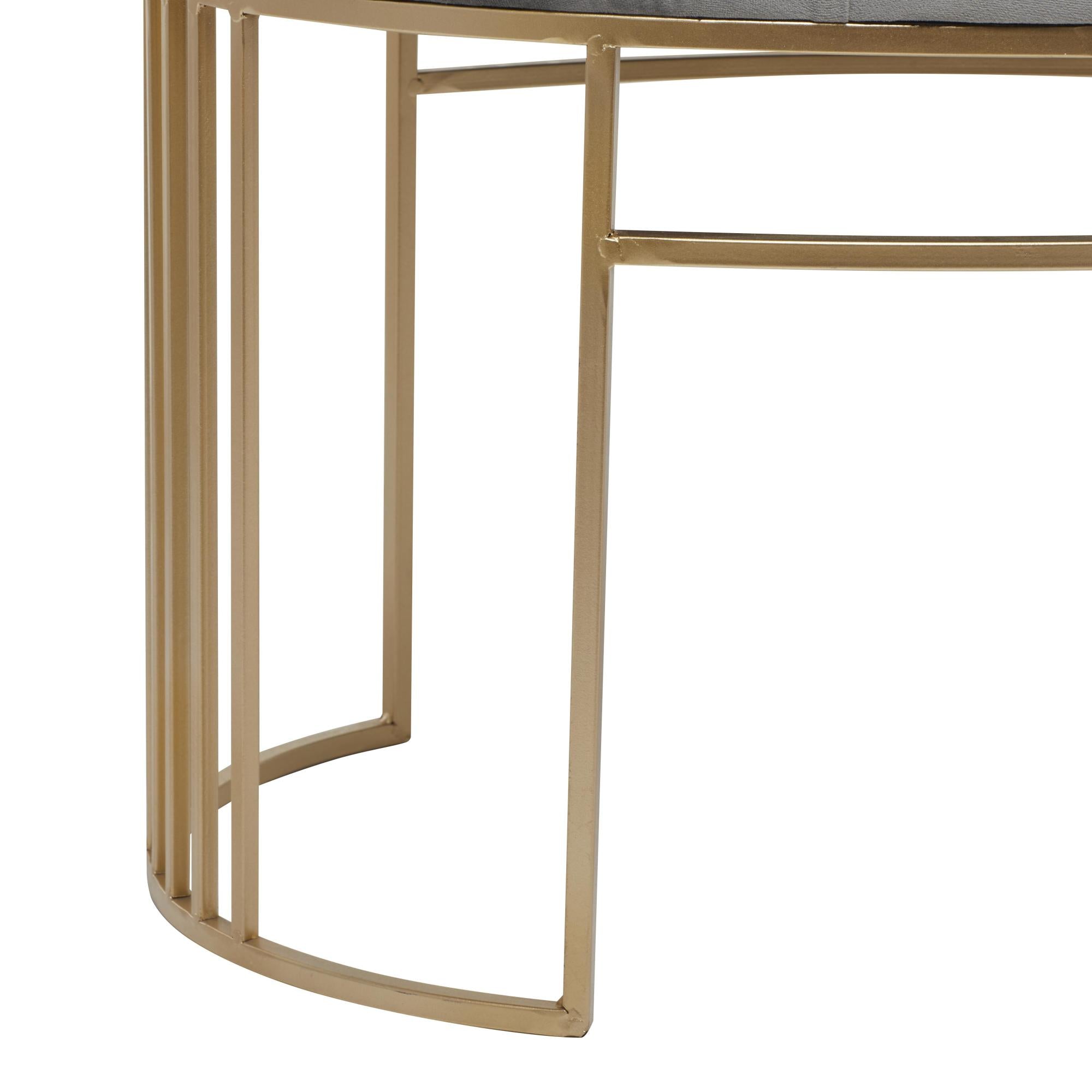 •This fabric bench features a soft tufted seat paired with a sleek open metal frame for a modern look