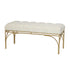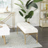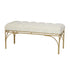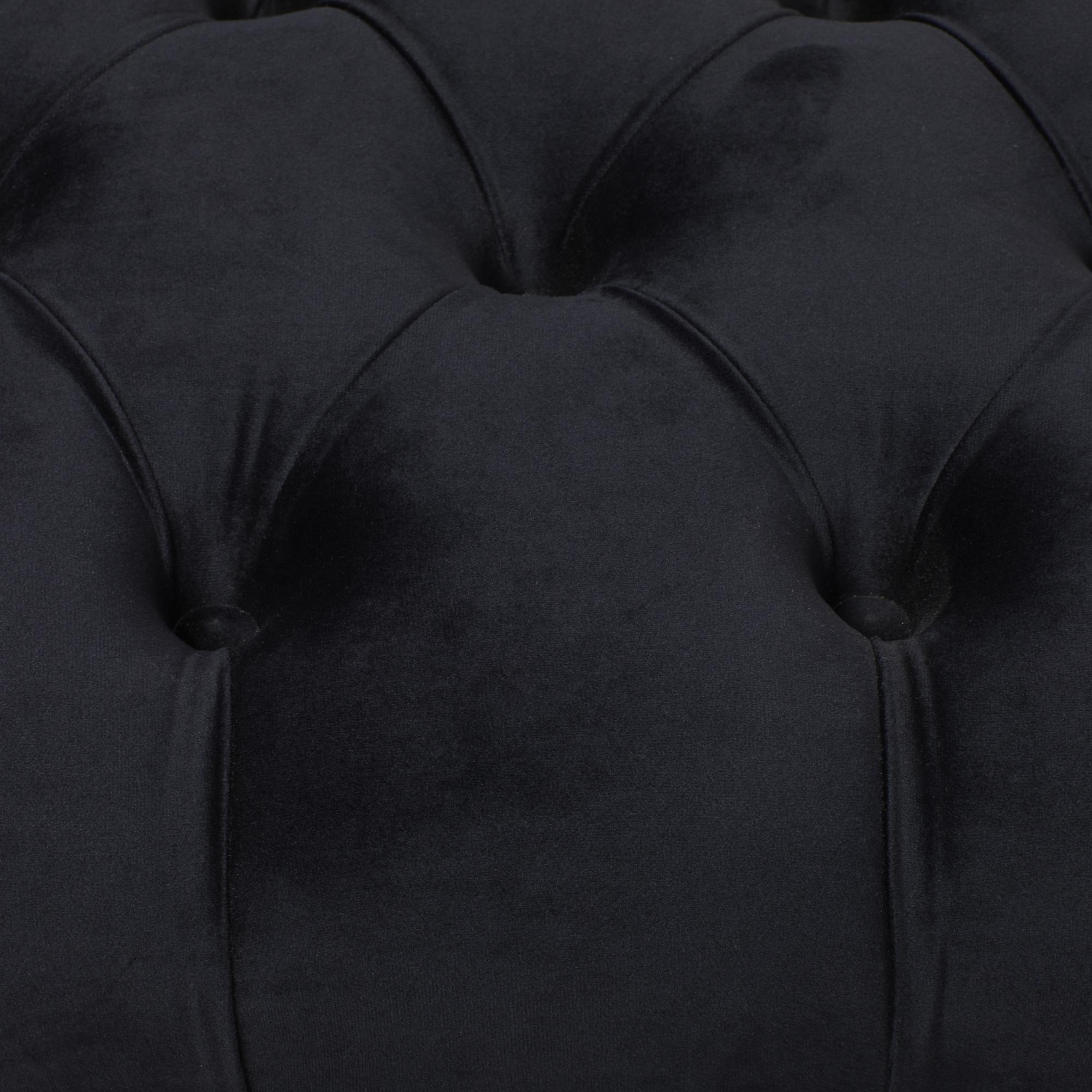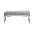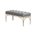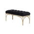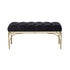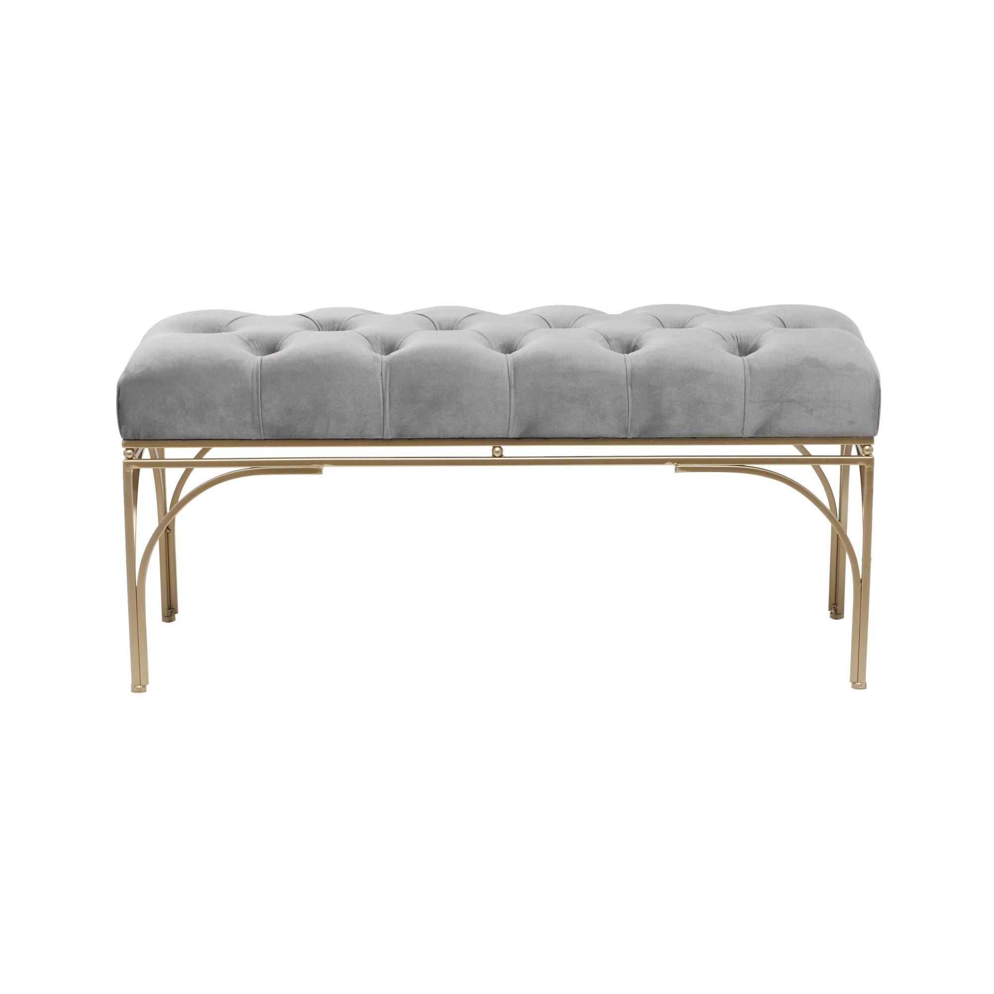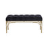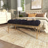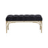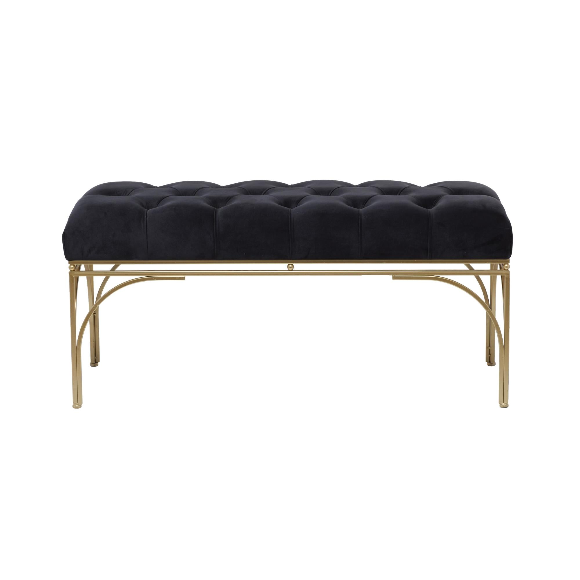 •This metal bench features a rectangular body structure with a button-cushioned velvet seat and four sturdy metal legs with a stunning arched bar design