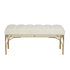So take a load off and relax on this decorative bench. A small piece of furniture that make a big difference to give your home an instance refresh. This entryway bench combines style and comfort, making it perfect for the home office, living room, or entryway. This item ships in 1 carton. Suitable for indoor use only. This item ships fully assembled in one piece. Maximum weight limit is 250 lbs. Can accommodate 2 people. This is a single entryway bench. Glam style.