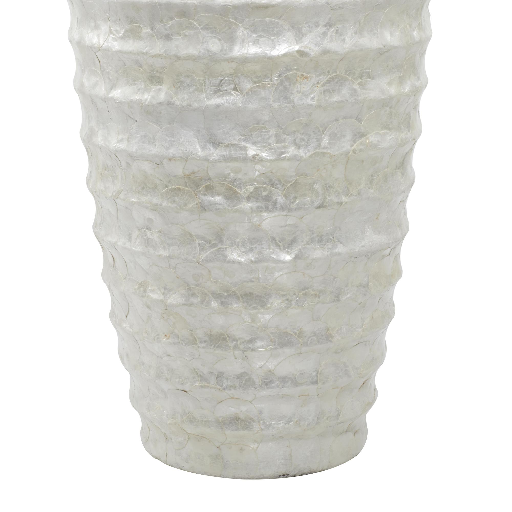 White Capiz Shell Tall Floor Decorative Vase with Ripple Design