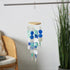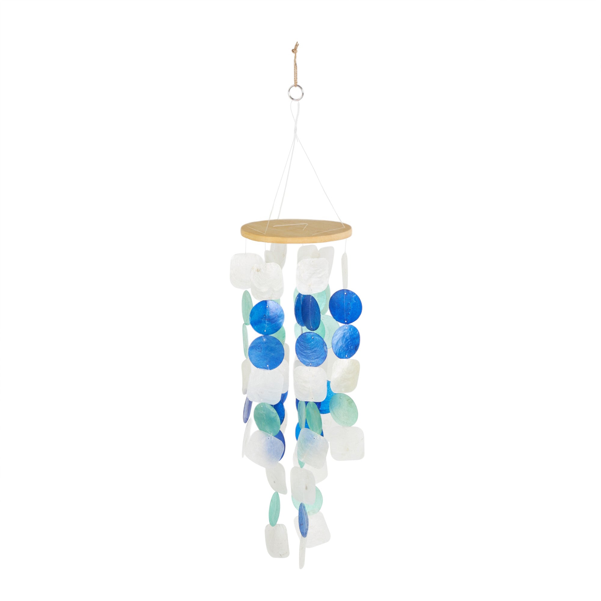 Geometric White Capiz Shell Waterfall Indoor Outdoor Windchime with Blue and Teal Accents