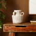 White Ceramic Antique Style Textured Decorative Vase with Arched Handles