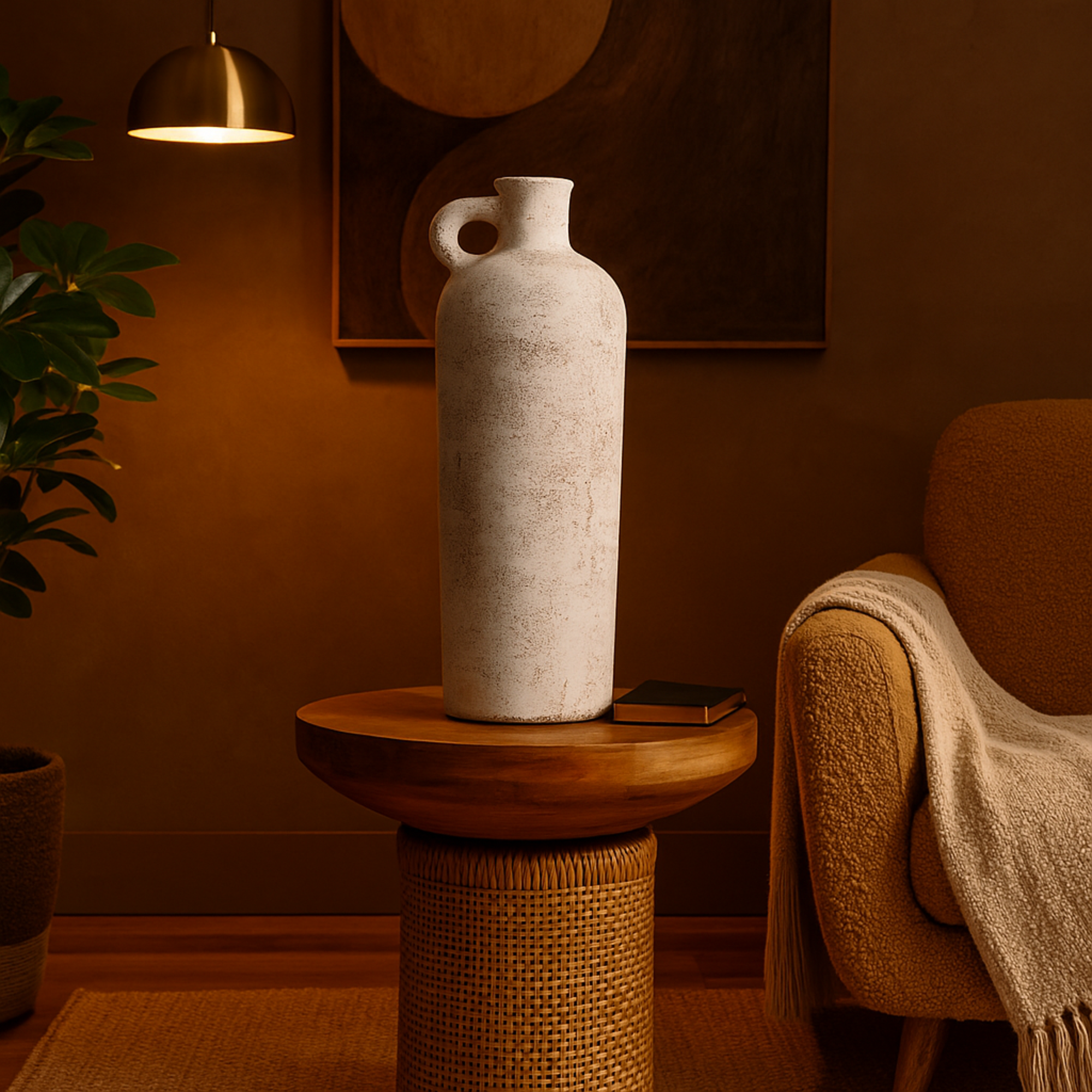 •The captivating rustic distressed pattern on this ceramic vase oozes with unique and weathered character, making it a striking focal point in any rustic interior