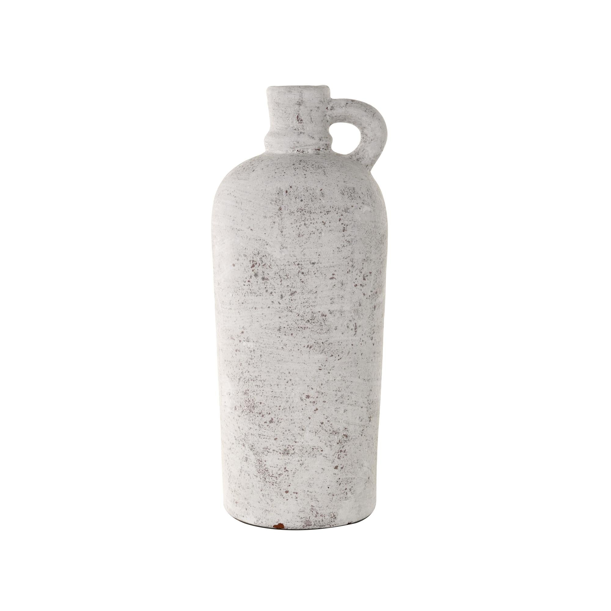White Ceramic Antique Style Textured Decorative Vase with Curved Handle