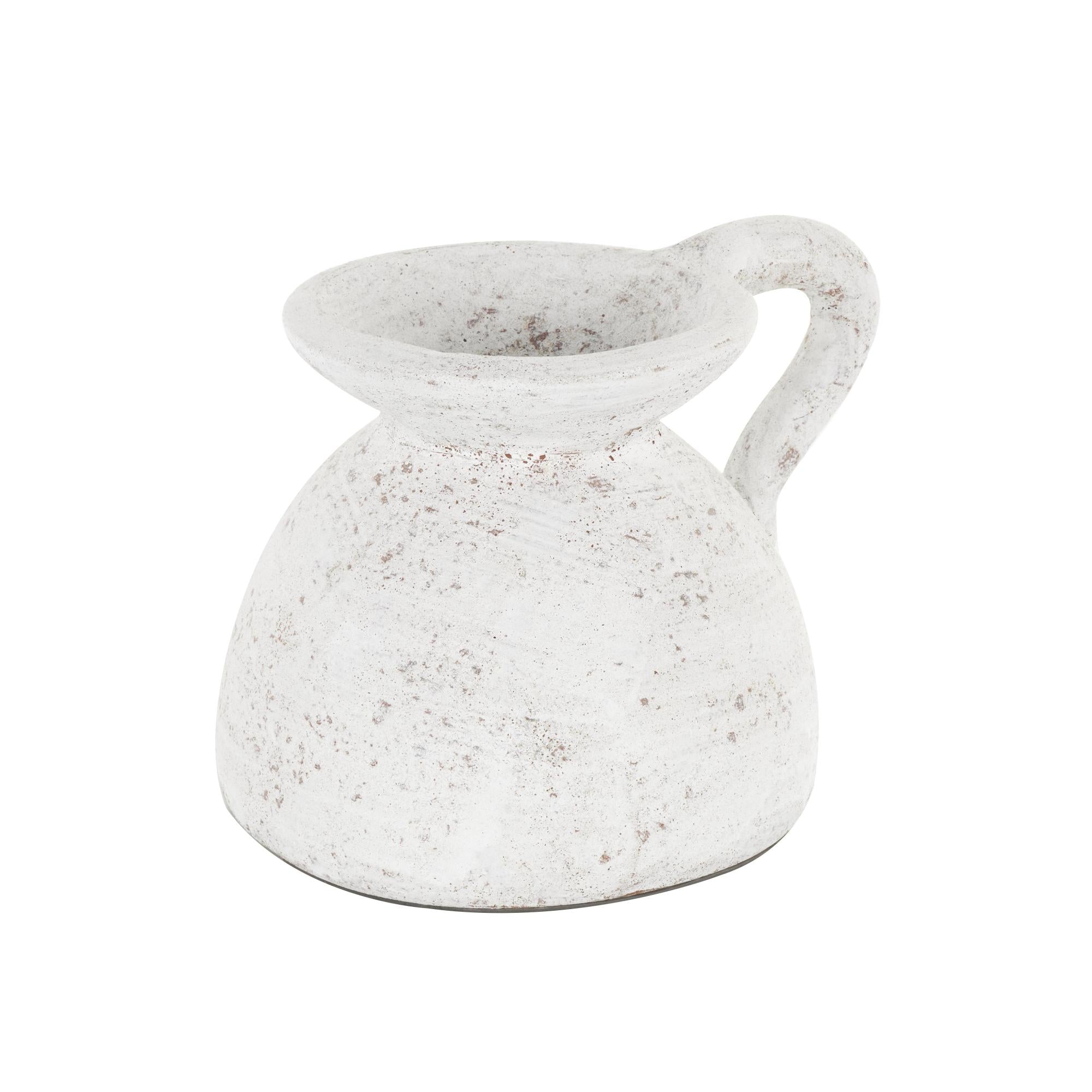 White Ceramic Antique Style Textured Pot Decorative Vase with Handle