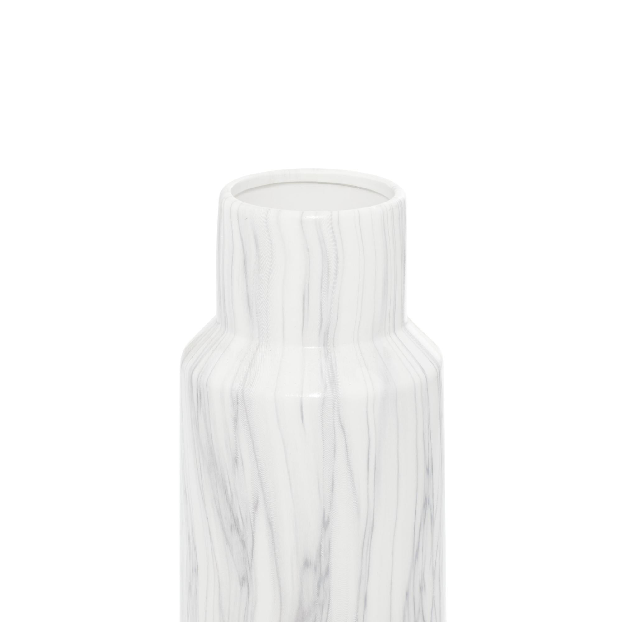 •The contemporary vase for home decor is made from molded ceramic and has a faux marble finish for a refined appearance