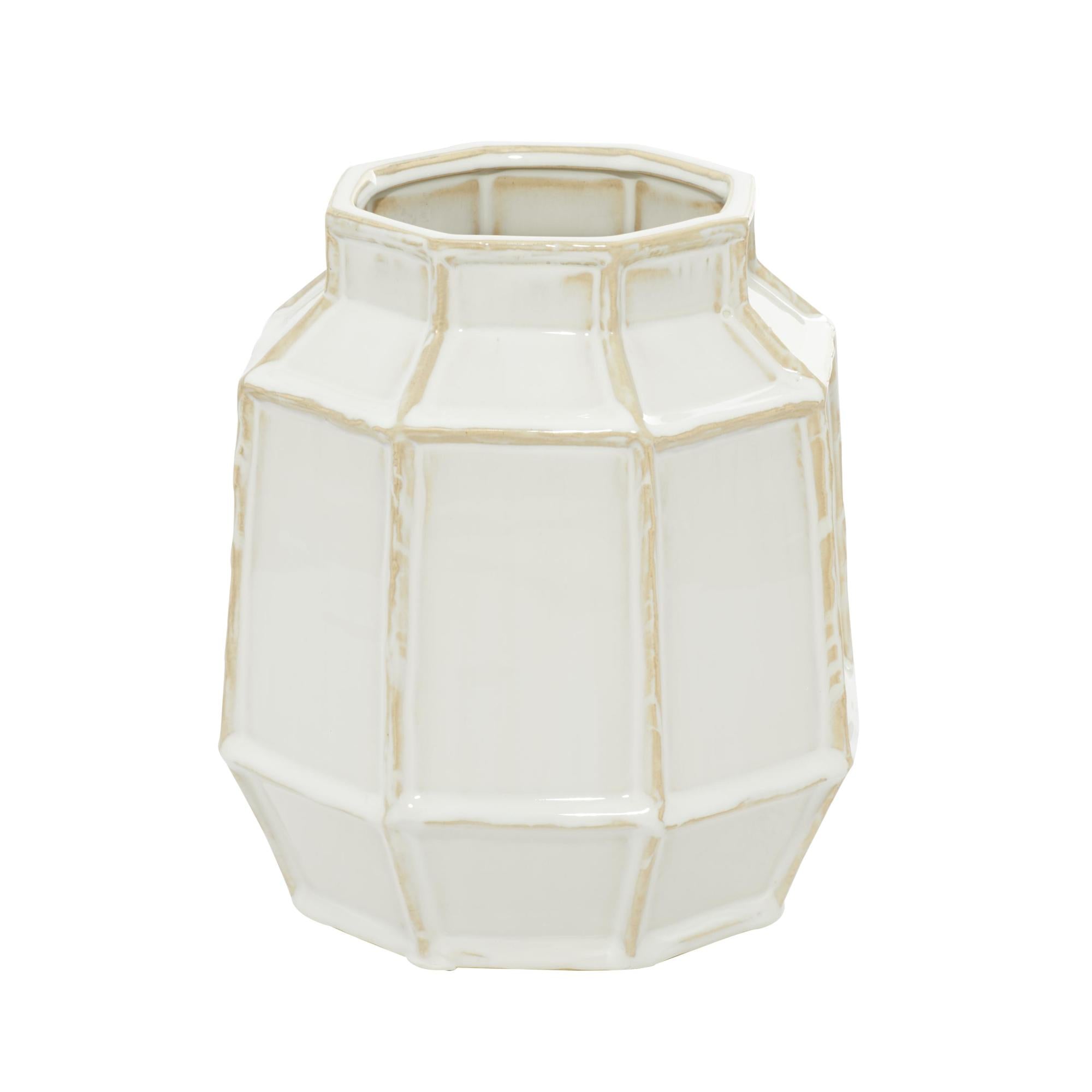 •This stoneware vase features a wide opening and setting, perfect for a centerpiece floral arrangement