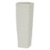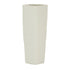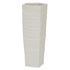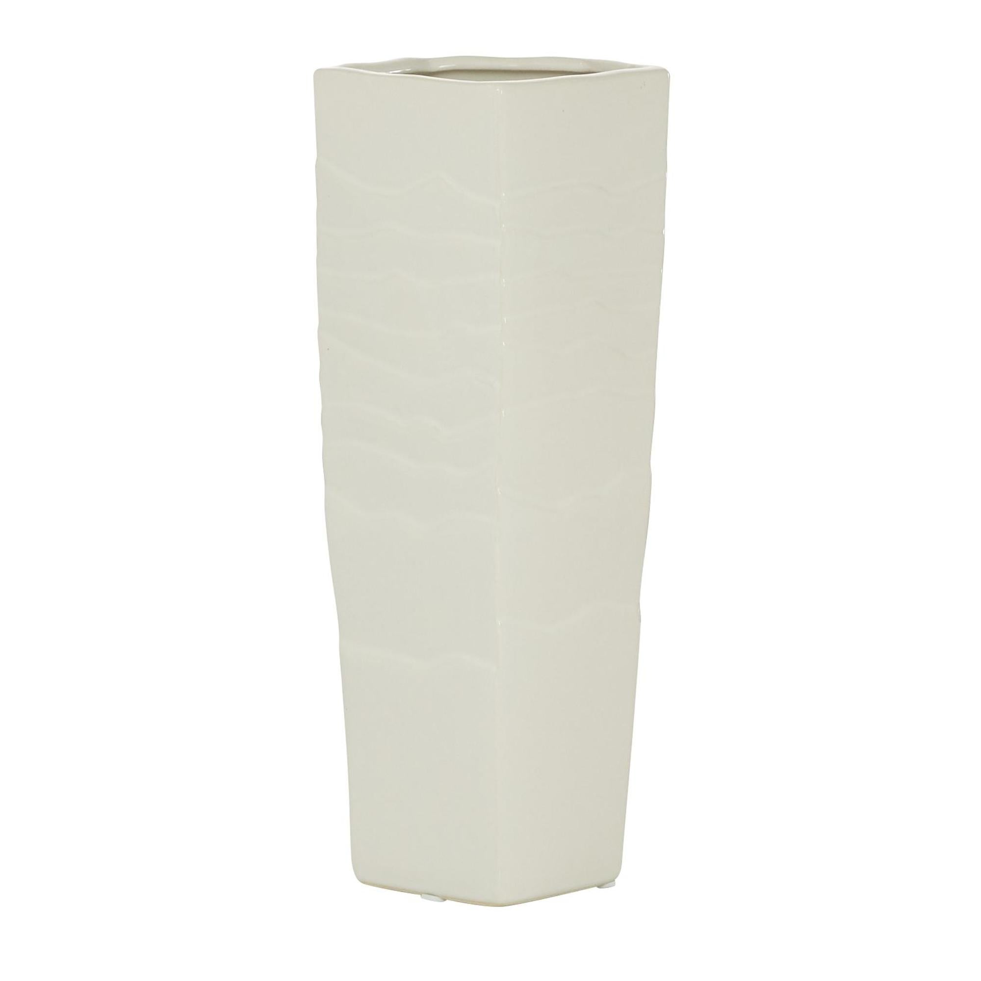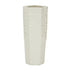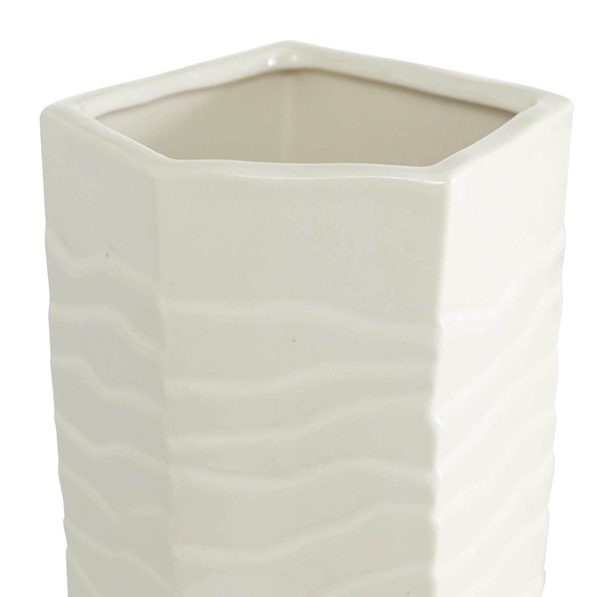 •This contemporary vase for home decor is molded from polished stoneware in a geometric textured design