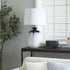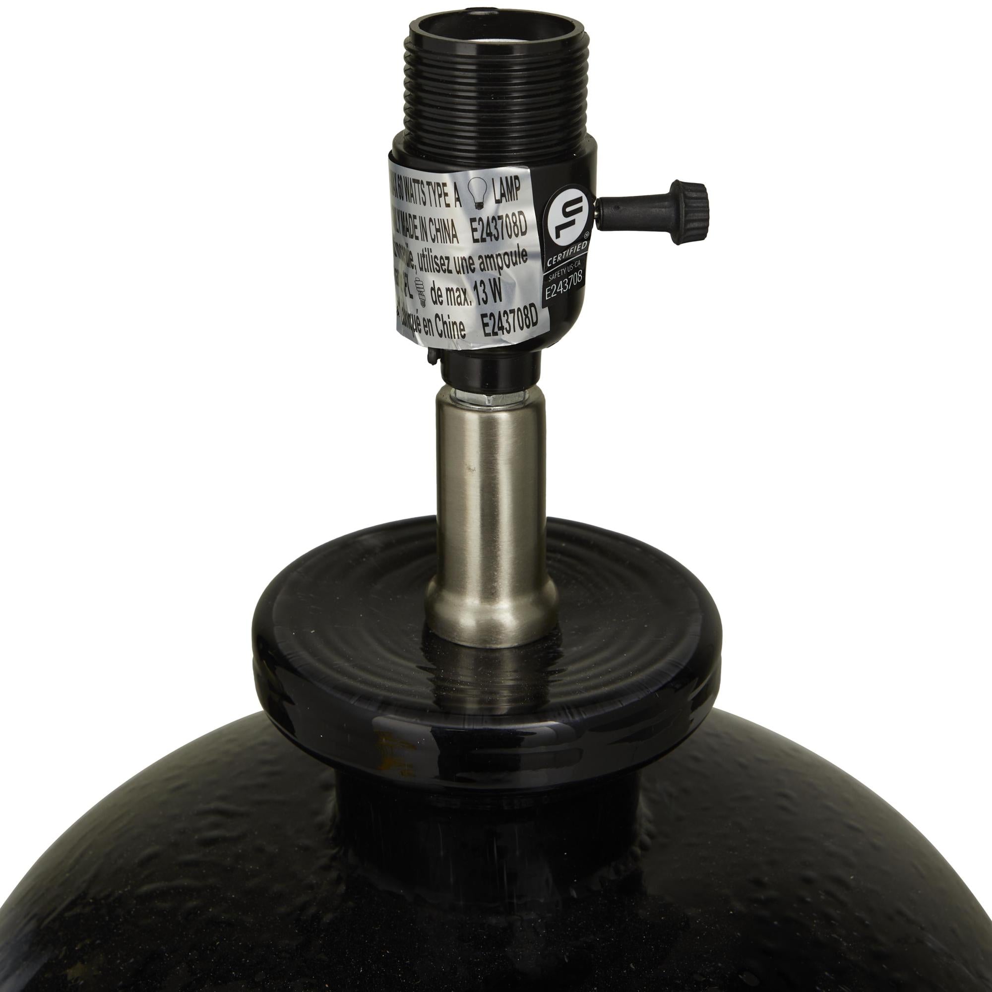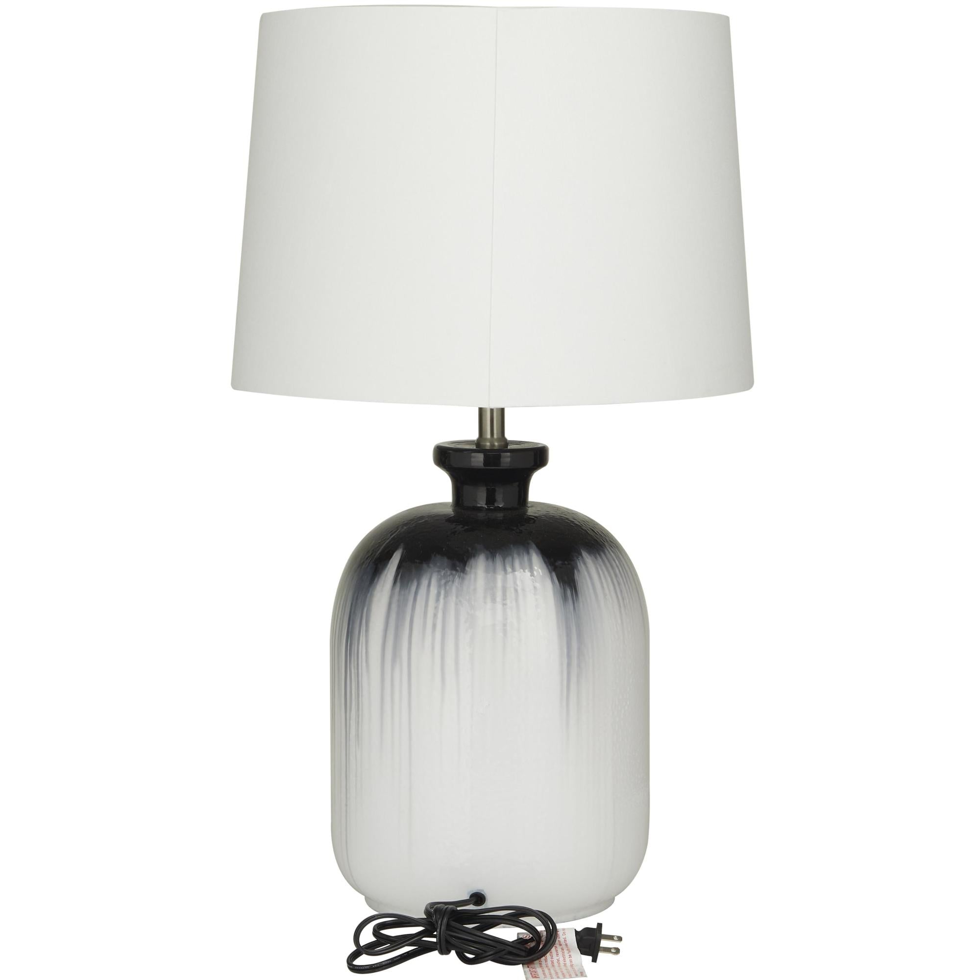 This accent lamp makes a captivating addition to tables and hallways, radiating a warm glow that enhances any space. Requires 1 60W Type A E26/Medium (Standard) bulb. This item ships in 1 carton. Comes with a 66" cord length. Suitable for indoor use only. This item ships fully assembled in one piece. Table lamp comes with a drum shaped shade that measures 17 x 17 x 12 inches. Includes a rotary switch. This is a single accent lamp. Modern style.