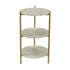 Ideal for living rooms or bedrooms, the end table beautifully displays picture frames, small vases, and sculptures. Adjustable levelers provide stability on uneven surfaces. This accent table has a completely finished back. This item ships in 1 carton. Suitable for indoor use only. This item ships fully assembled in one piece. Marble is a product of nature and no two pieces are exactly alike. It is prone to variations in color and/or patterns in the material that add to the beauty and charm of the piece.. Maximum weight limit is 300 lbs. Made in India. This is a single end table. Marble accent table features 2 removable shelves. Modern style.