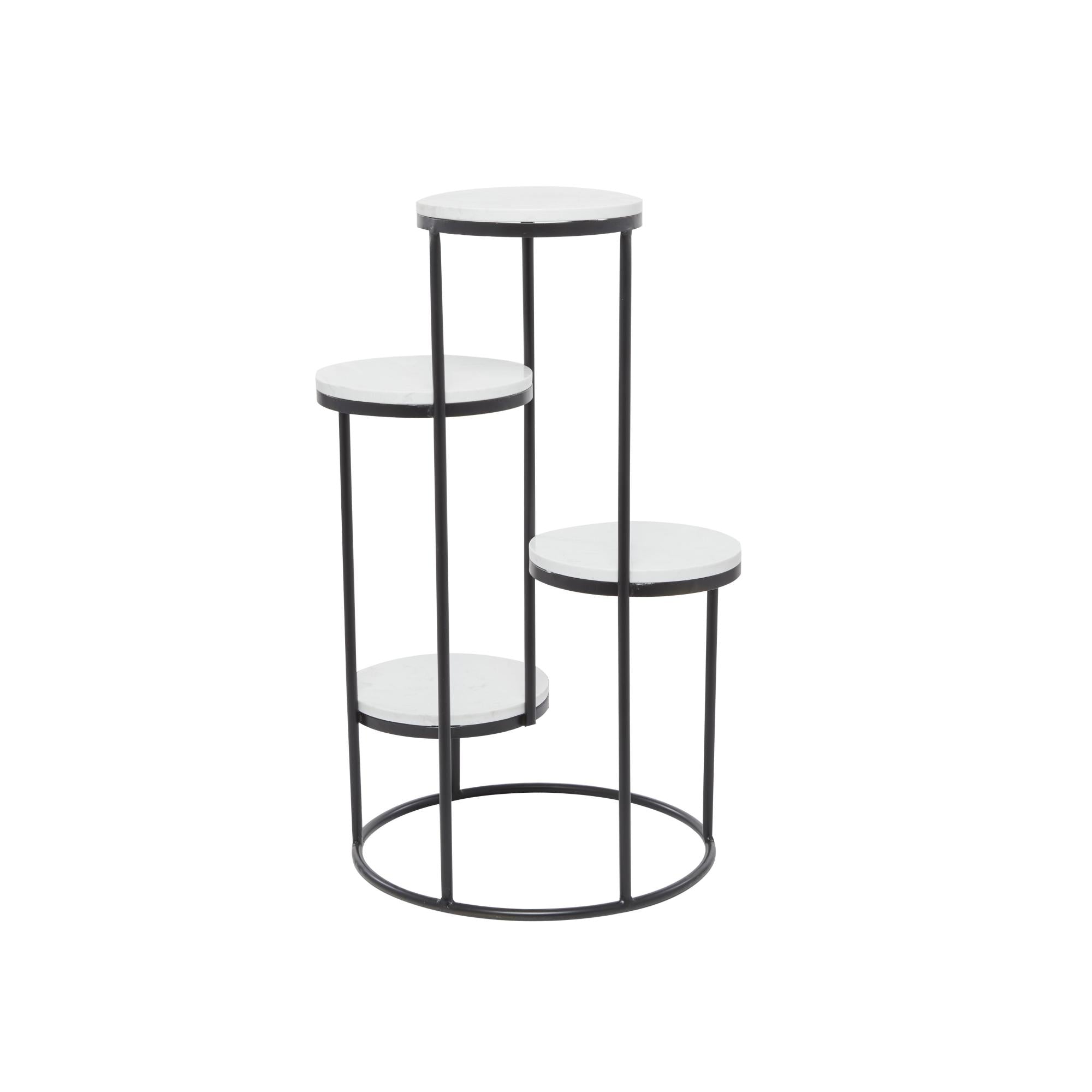 White Marble 4 Tier Indoor Plantstand with Black Base