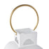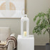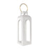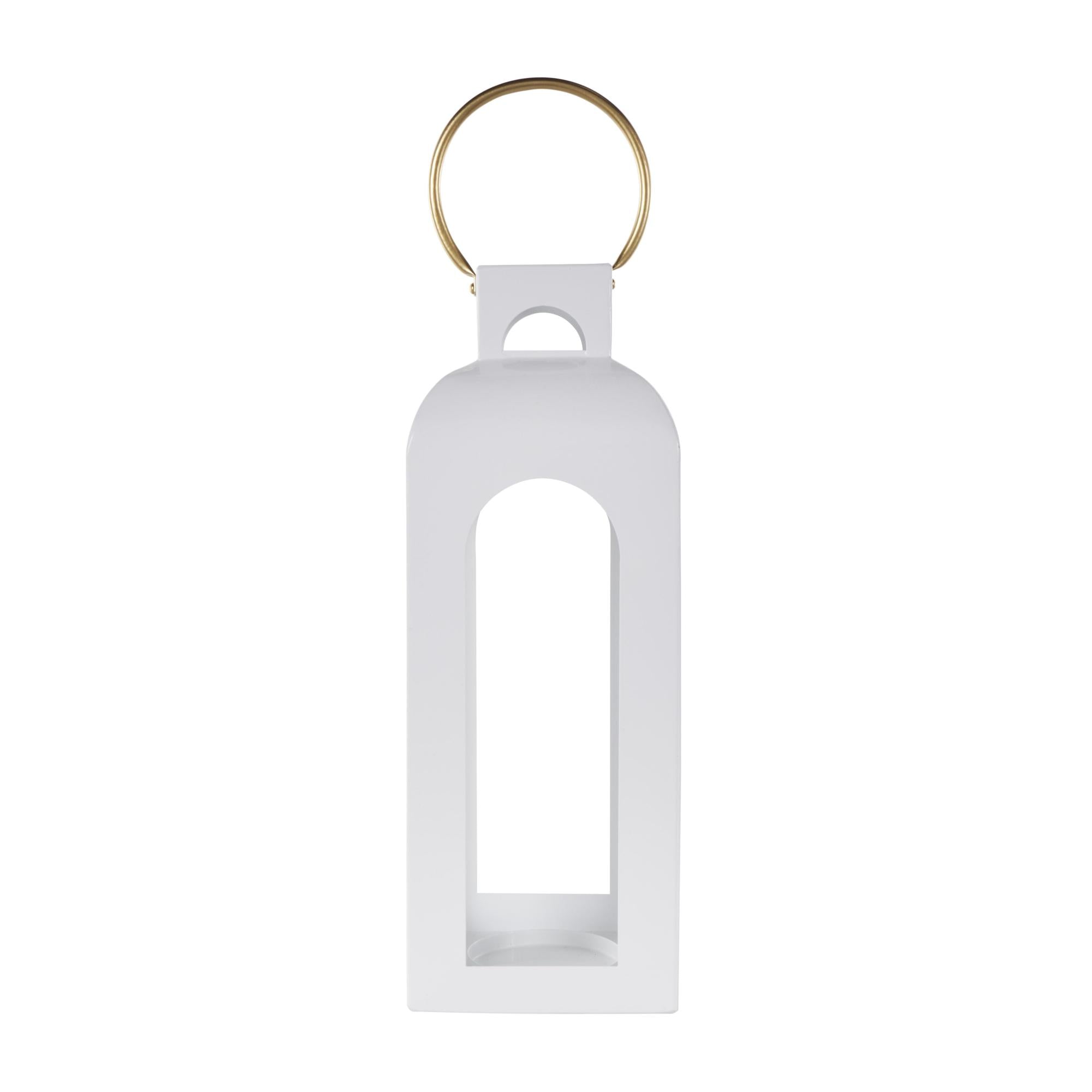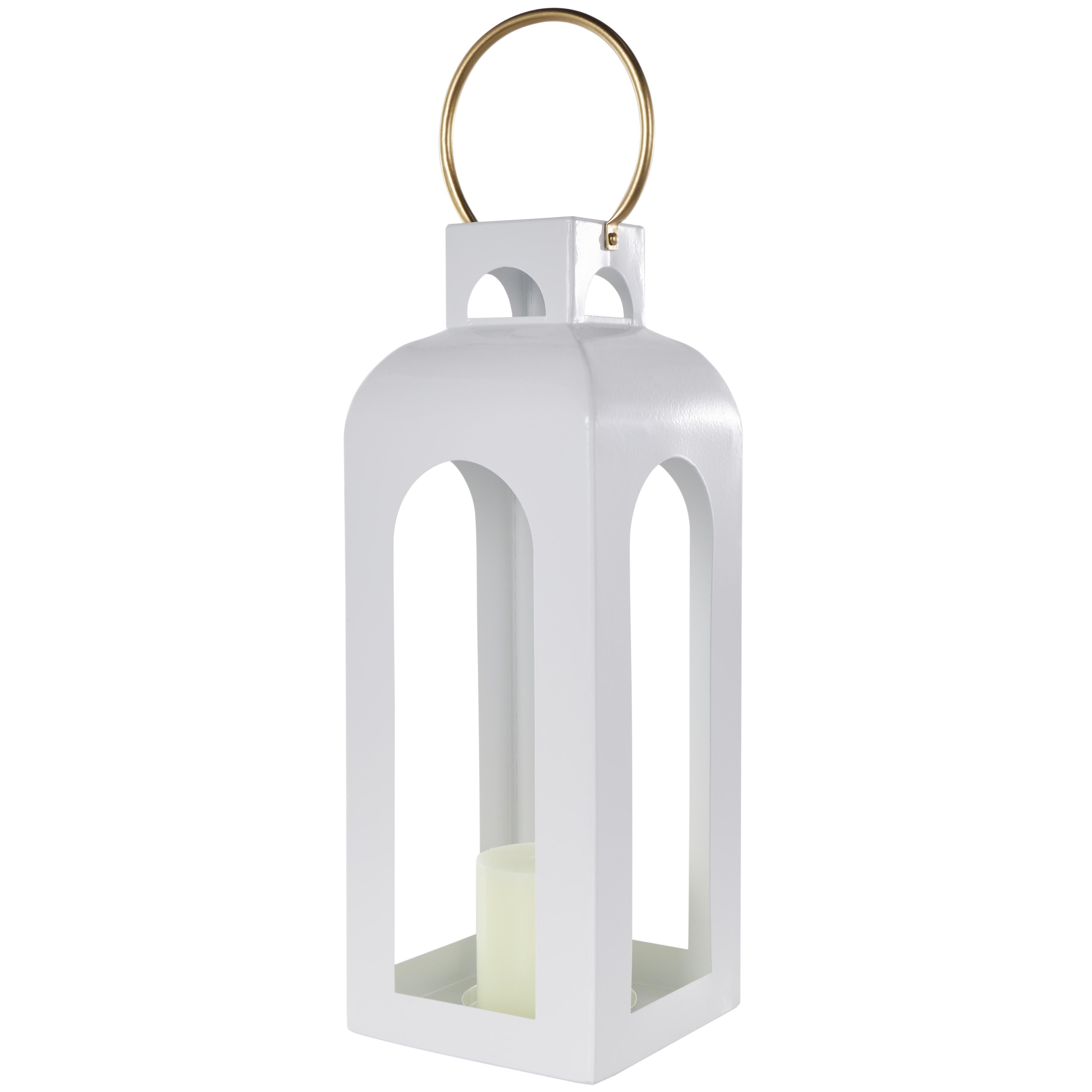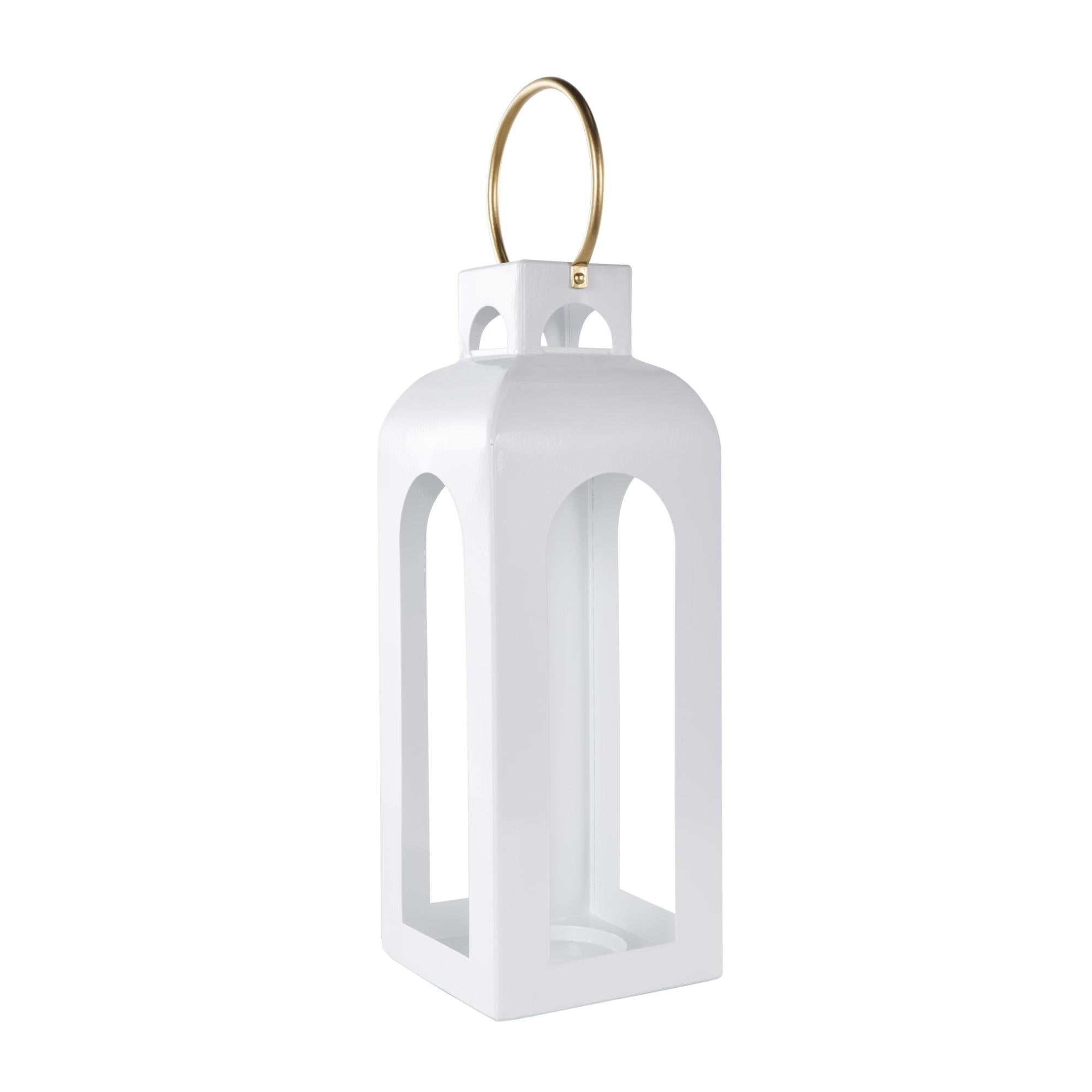 White Metal Tall Arched Cutout Indoor Outdoor Candle Lantern with Gold Handle