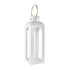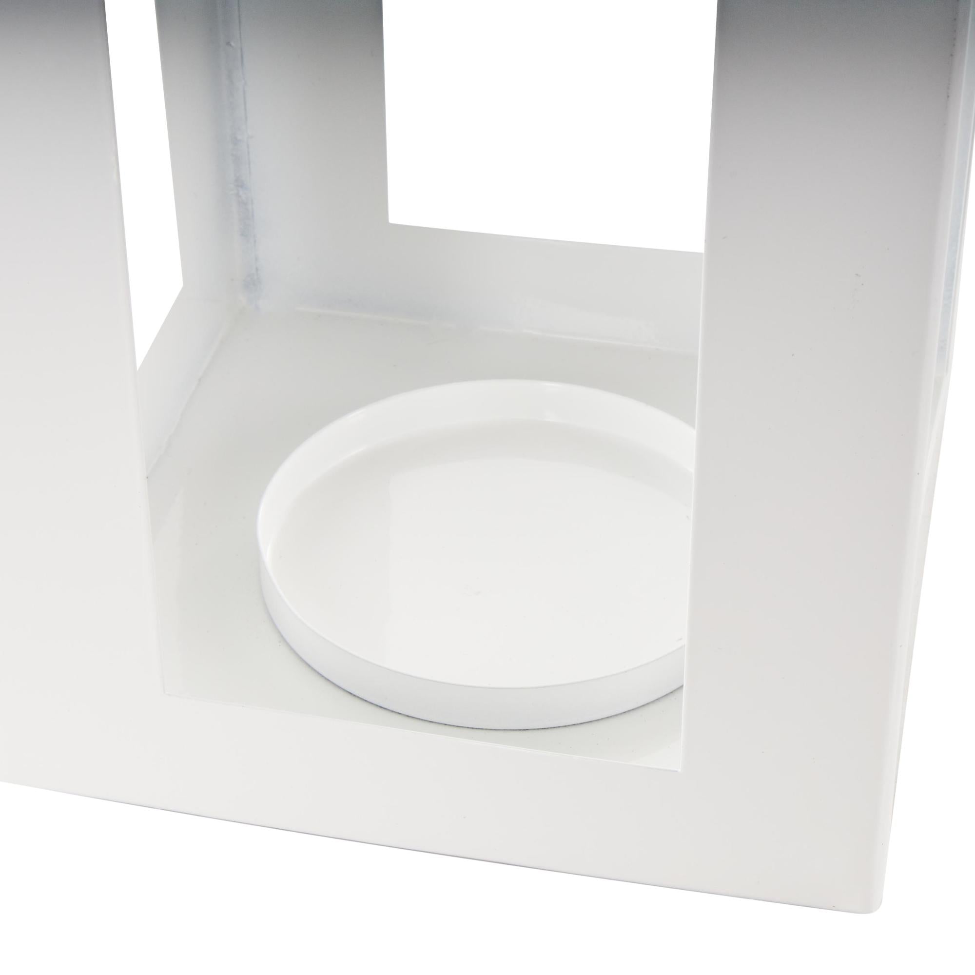 •The transitional candle holder lantern is constructed with carefully shaped and cut metal painted with white, with a handle attached