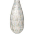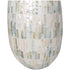 •The intricate pattern of the hand applied mosaic design adds a unique touch that elevates the decor with its natural beauty and texture in this mother of pearl vase