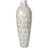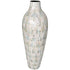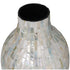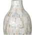 •The intricate pattern of the hand applied mosaic design adds a unique touch that elevates the decor with its natural beauty and texture in this mother of pearl vase