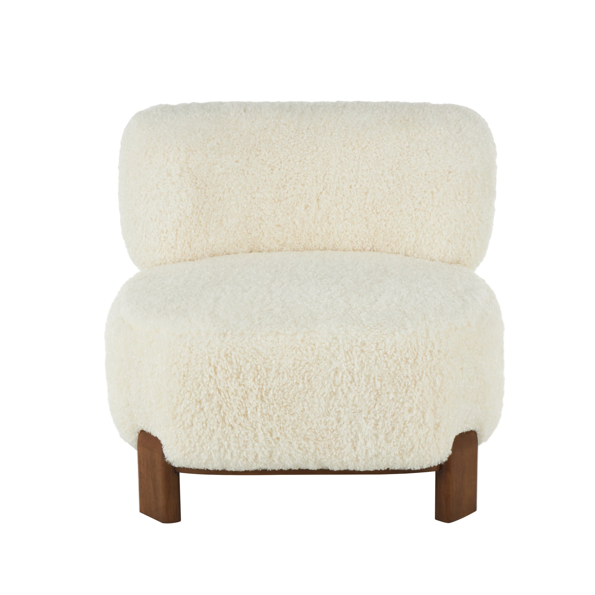 White Polyester Living Room Accent Chair with Brown Wooden Legs