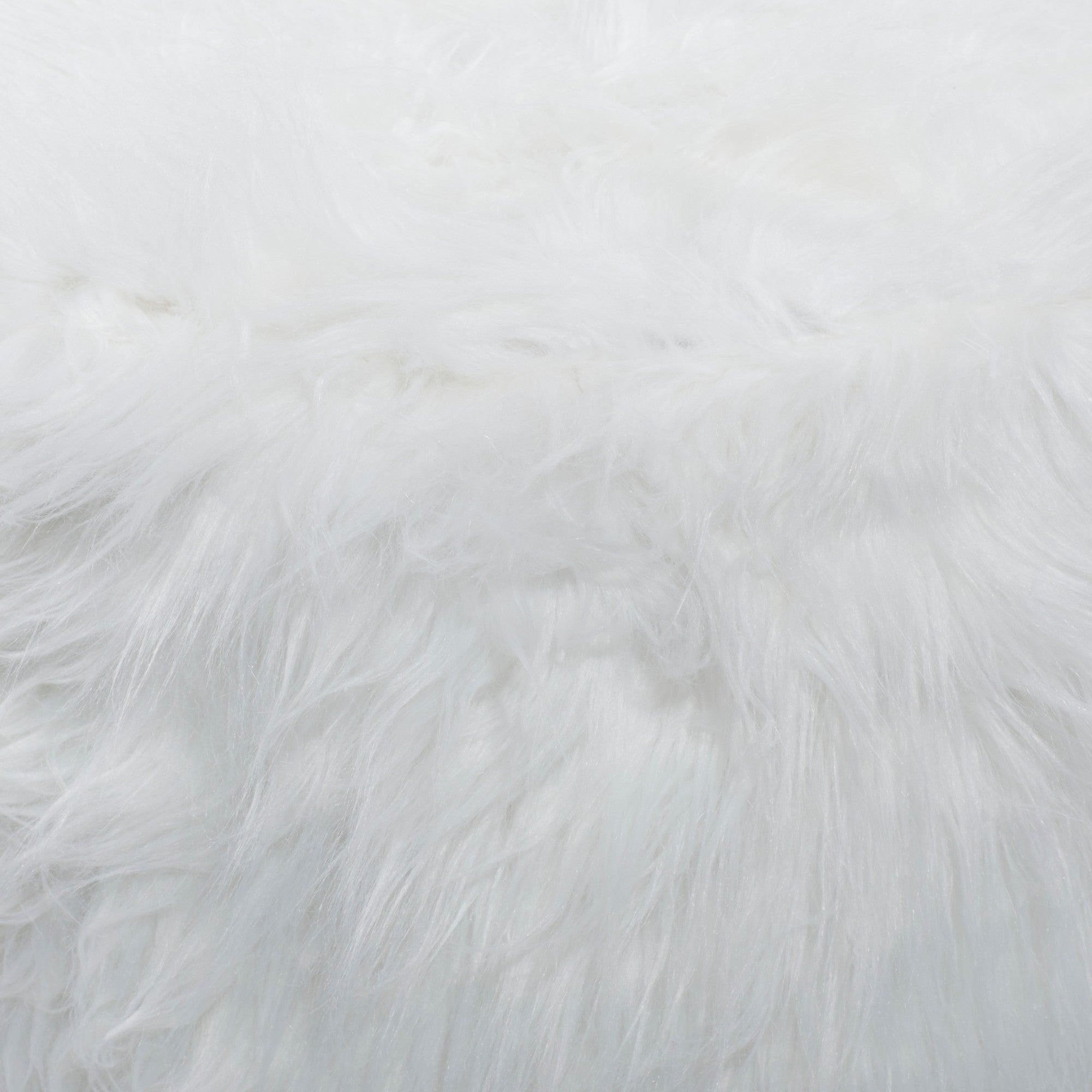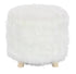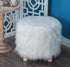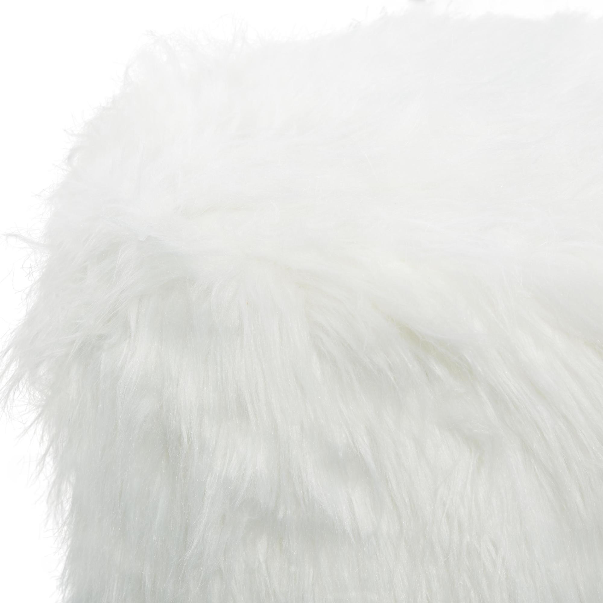 •The textured chair stool showcases an appealing faux fur design throughout its round exterior, adding sophistication to any room's décor