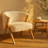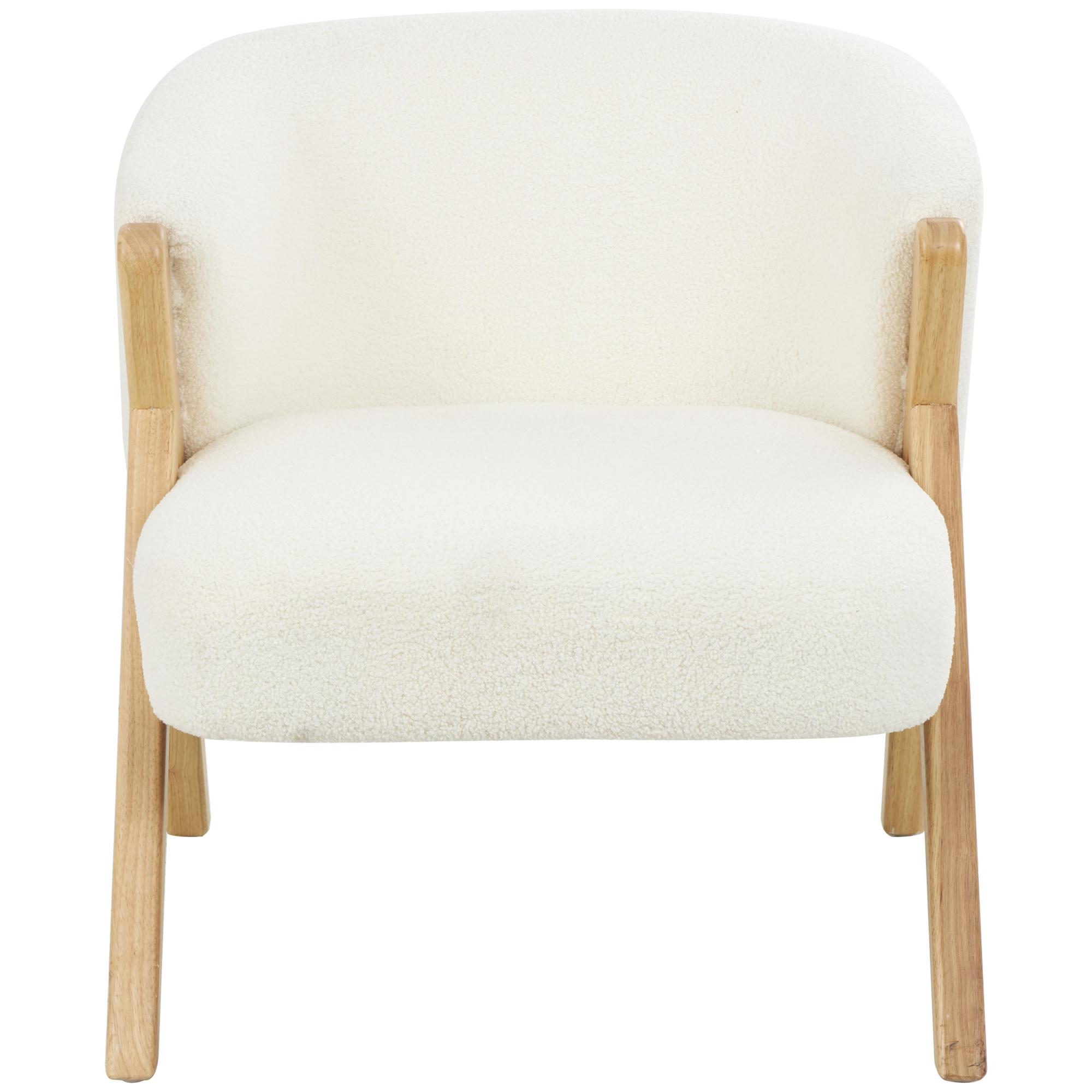White Polyester Rounded Boucle Living Room Accent Chair with Angled Wooden Legs
