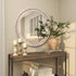 •This wood wall mirror boasts an oversized round structure with an old world-themed design