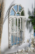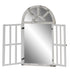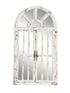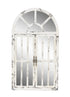 White Wood Window Pane Inspired 2 Door Room Wall Mirror with Arched Top and Distressing