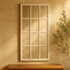 •The farmhouse accent wall mirror's rectangular wooden frame is inlaid with rectangular glass panels