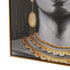 •The polystone framed wall art features a shaded image of a woman wearing decorative jewelry and foil accents on the background, adding an elegant touch
