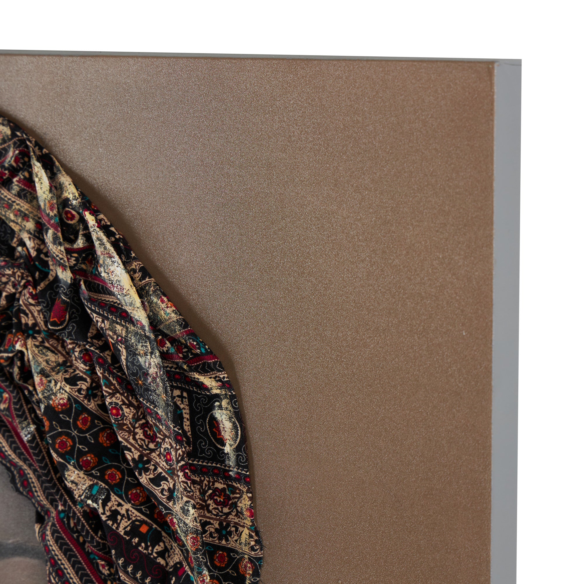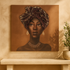 Woman Brown Canvas Decorative Wall Art with 3D Fabric Headwear And Gold Jewels