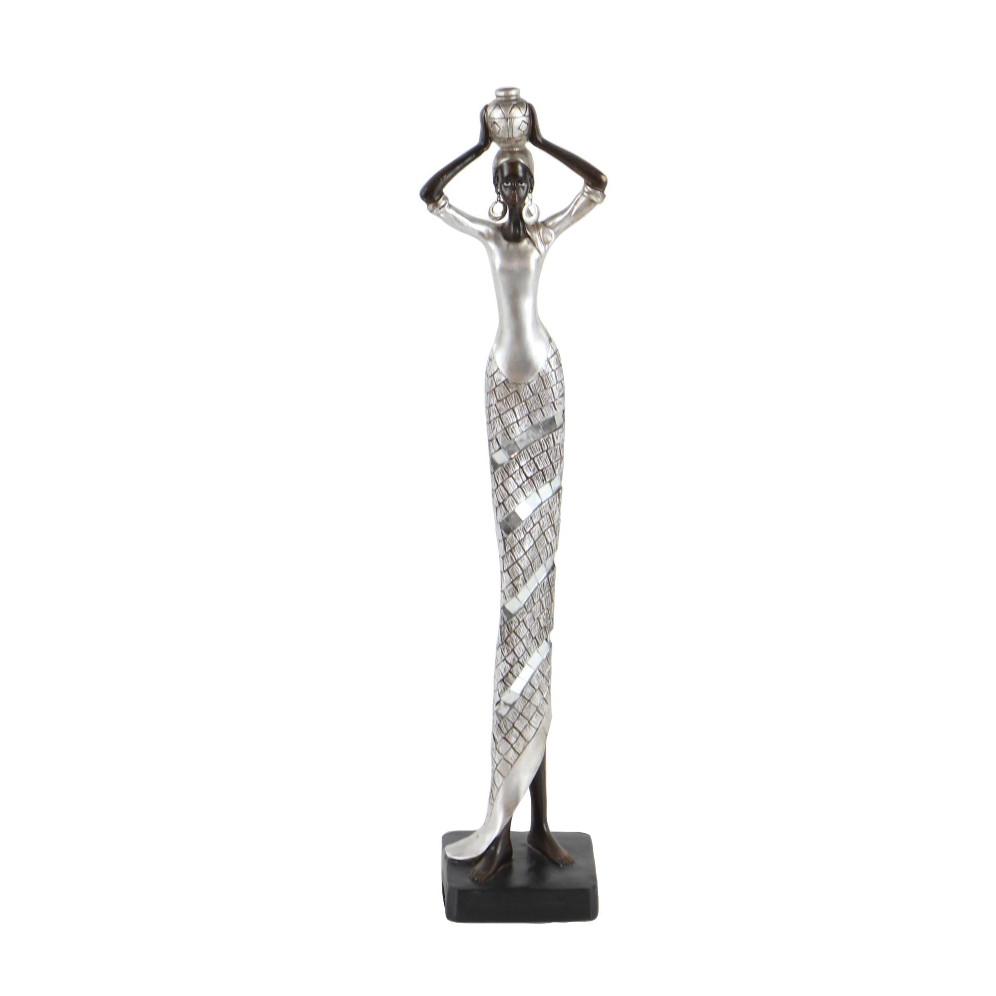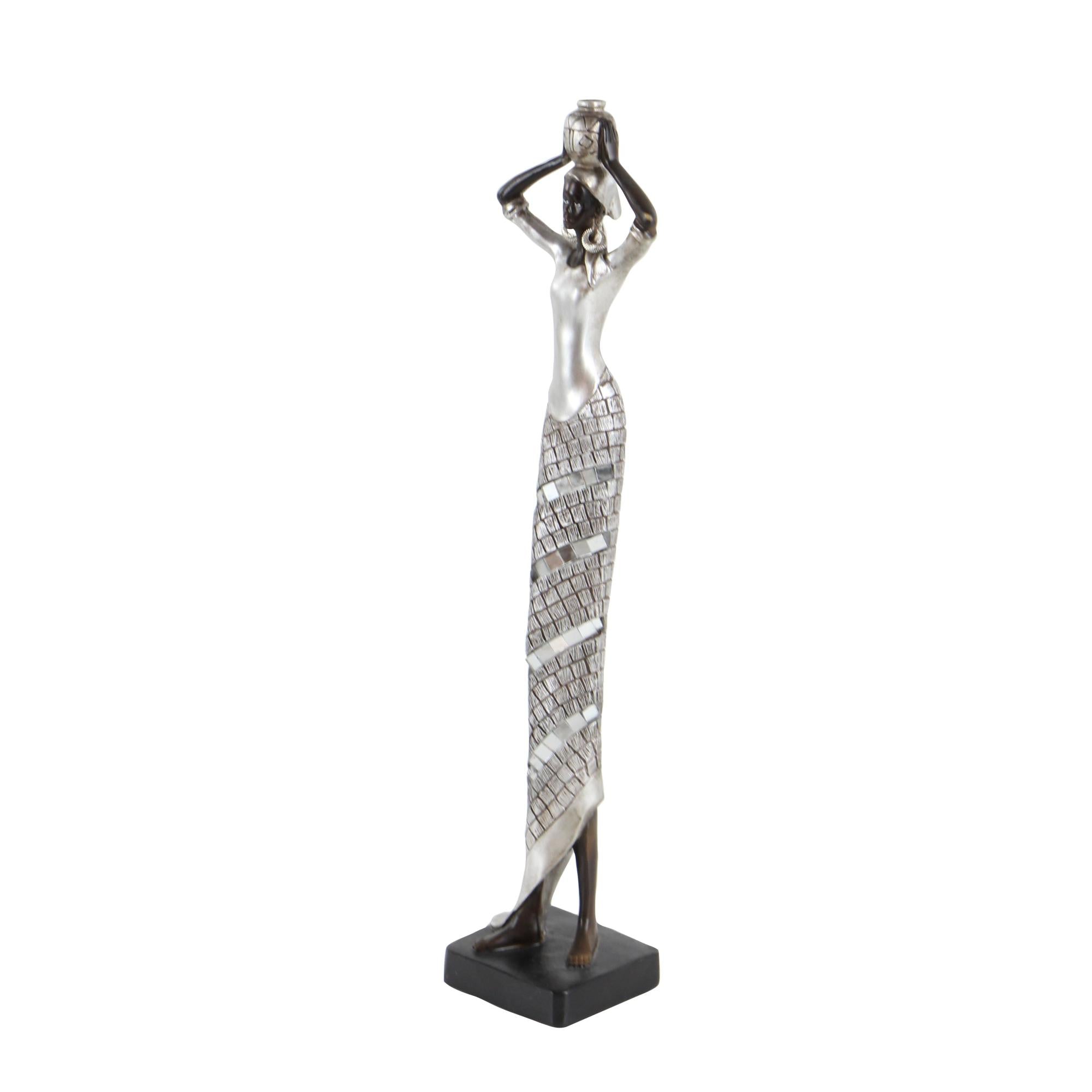 Woman Silver Polystone Standing African Decorative Sculpture with Mosaic Details