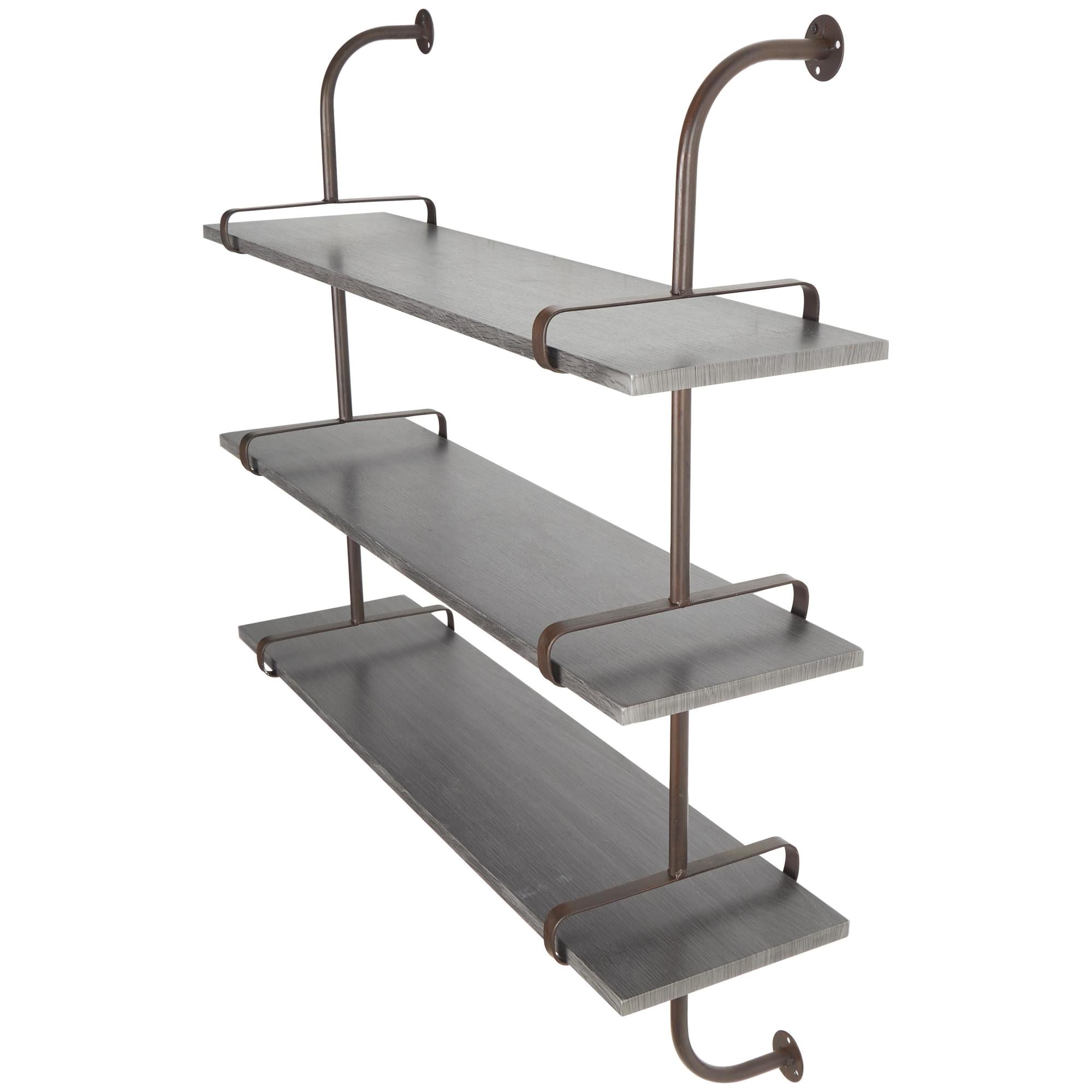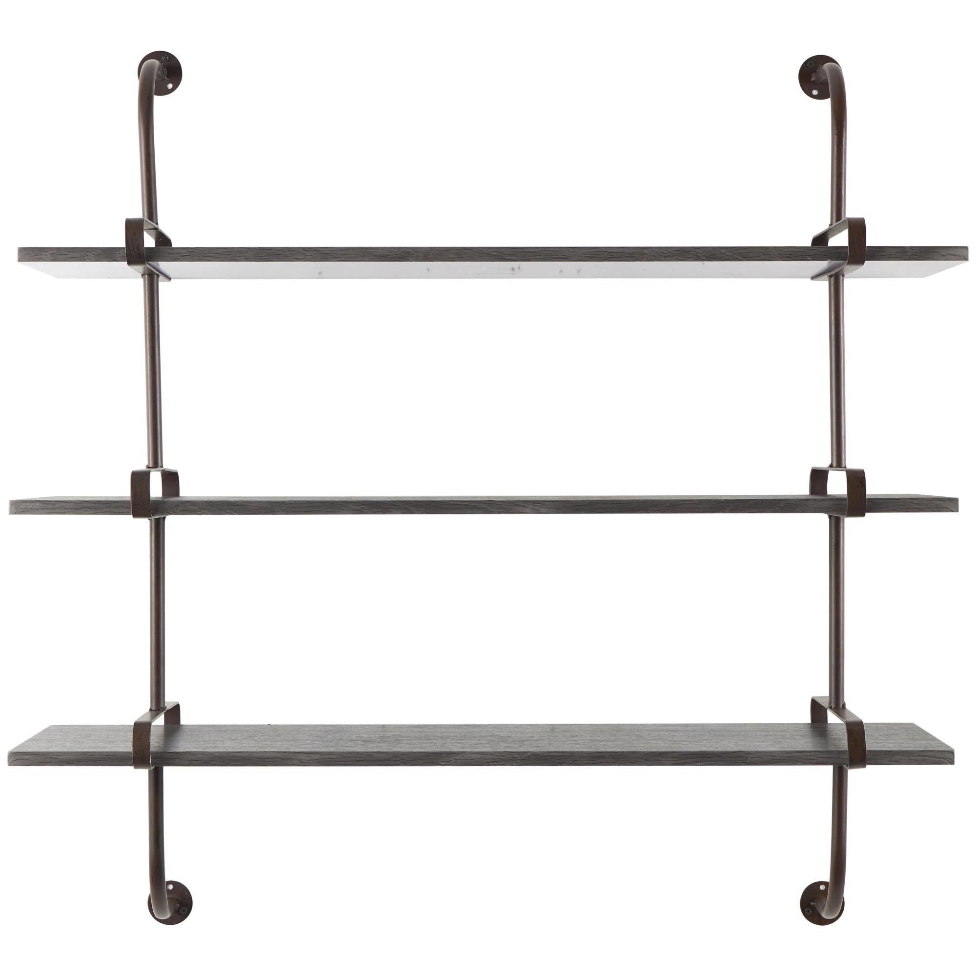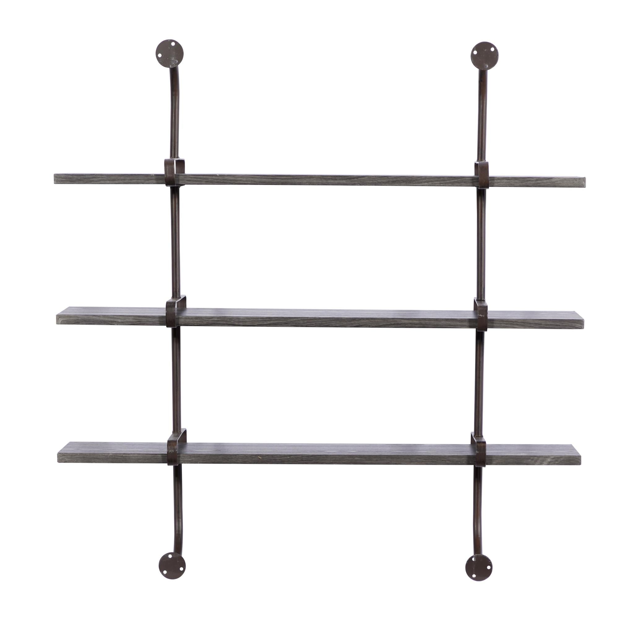 Enhance your industrial-themed living room or bedroom by organizing and decorating with this floating shelf, adding both style and function to your home. This item ships in 1 carton. Can be hung vertically using the holes; nails and screws not included. Suitable for indoor use only. Some assembly required. Maximum weight limit is 20 lbs. This is a single floating shelf. Wood wall shelf features 3 fixed shelves. Industrial style.