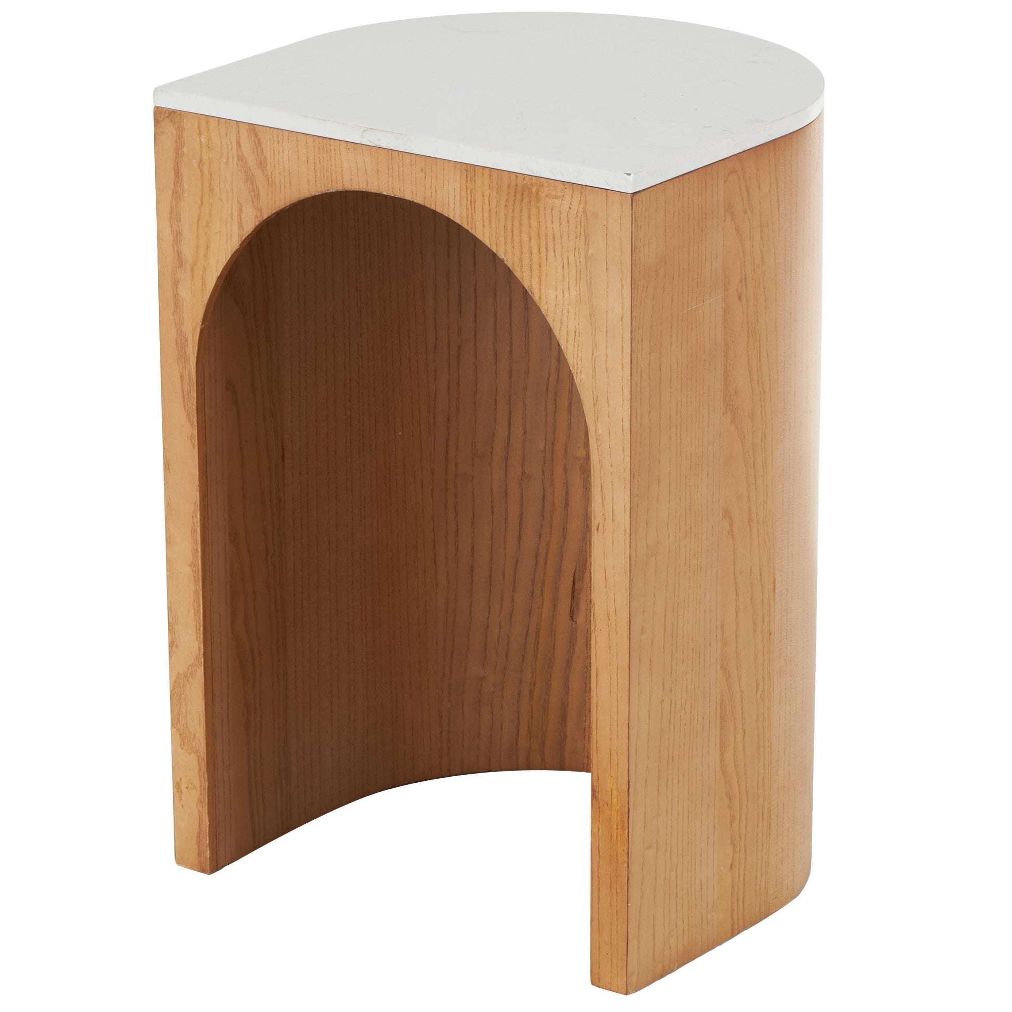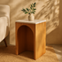 Wood Cutout Arch Side End Accent Table with White Marble Tabletop