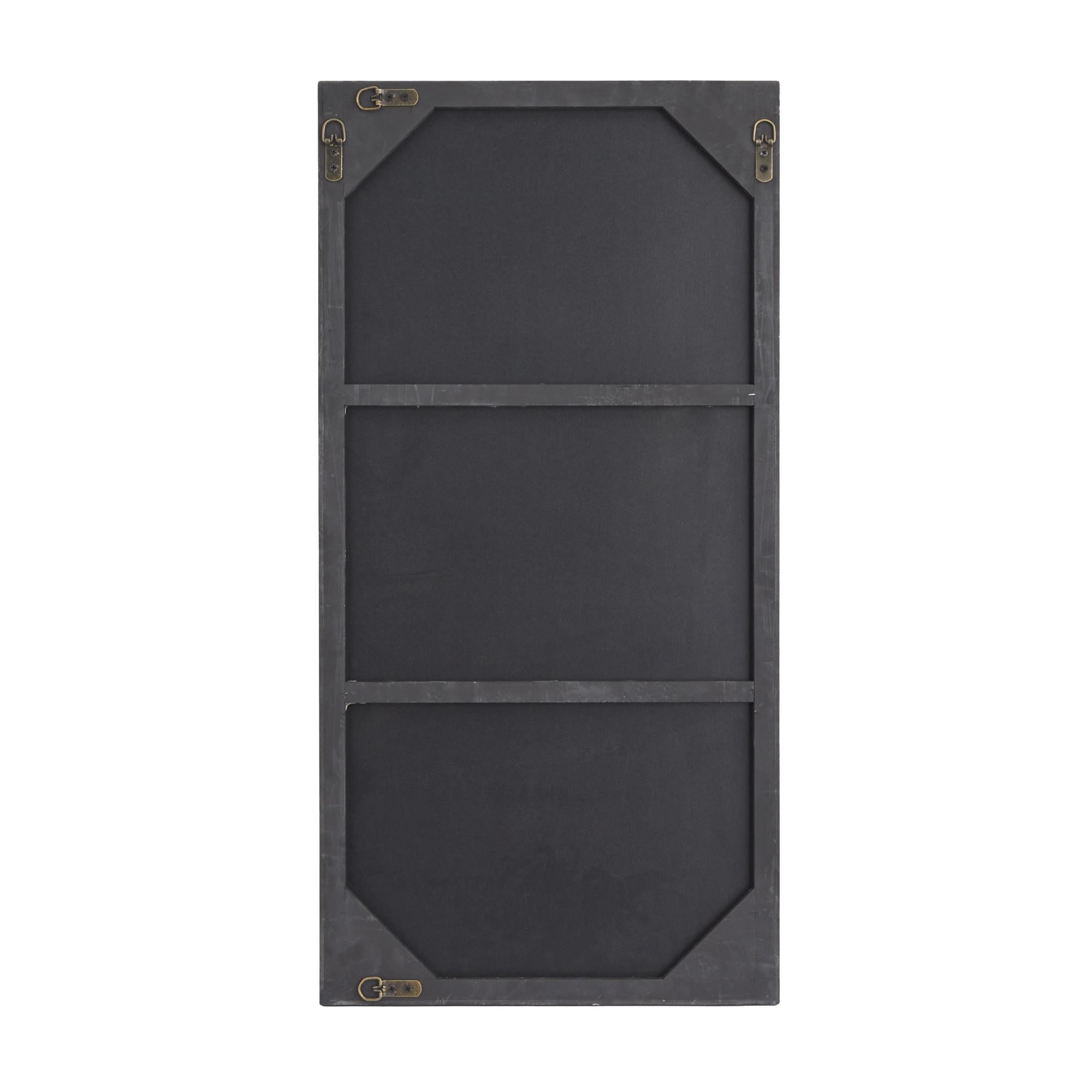 •Sleek lines complement the reflective finish of this wood wall mirror for a structured overall design that adds depth to the walls