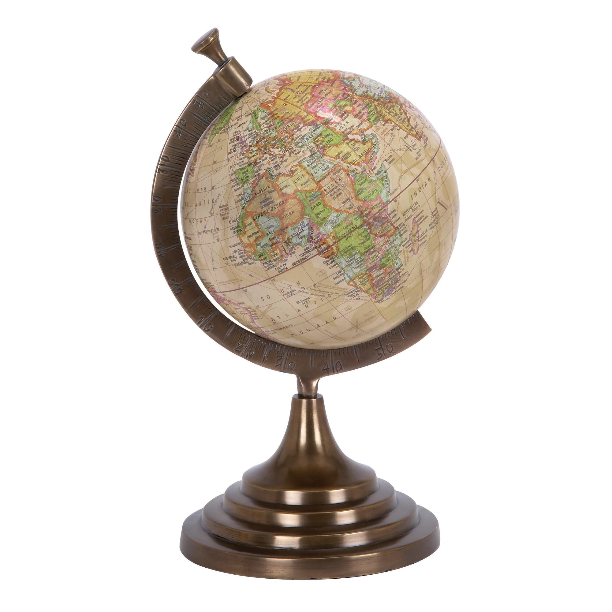 Place this globe on any counter or table to show your love for traveling. Embark on an exciting adventure with this world globe decor. Enhance your home decor by placing the copper decorative world globe on an accent table to express your passion for travel. Designed with felt or rubber stoppers at the base that prevent scratching furniture and table tops, as well as sliding around. This item ships in 1 carton. Aluminum globe makes a great gift for any occasion. Table top globe measures 8in diameter. Suitable for indoor use only. This item ships fully assembled in one piece. Made in India. This is a single copper decorative world globe. Traditional style.