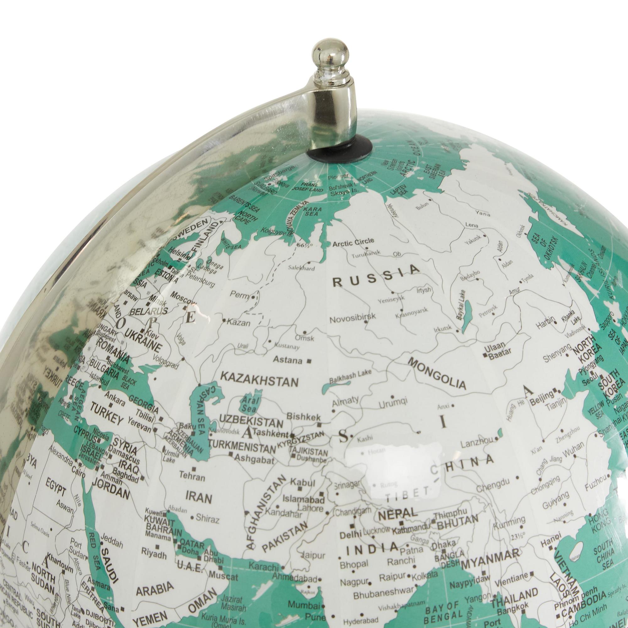 Place this globe on any counter or table to show your love for traveling. Embark on an exciting adventure with this world globe decor. Enhance any room by placing the decorative world globe on an accent table to express your love for travel. This item ships in 1 carton. Aluminum globe makes a great gift for any occasion. Table top globe measures 12in diameter. Suitable for indoor use only. This item ships fully assembled in one piece. Made in India. This is a single decorative world globe. Modern style.